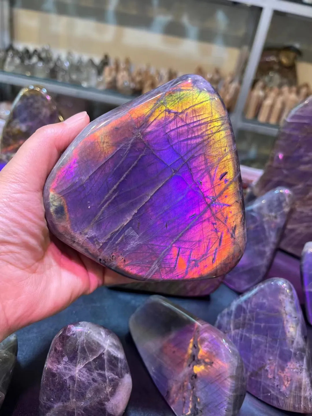 Transform your home into a calming oasis with our Natural Crystal Blue and Violet Moonstone Raw Gemstone Ornament. Perfect for decorating and healing, the polished quartz and labradorite stones add a touch of tranquility and balance to any space. Embrace the power of nature with this beautiful and unique piece.