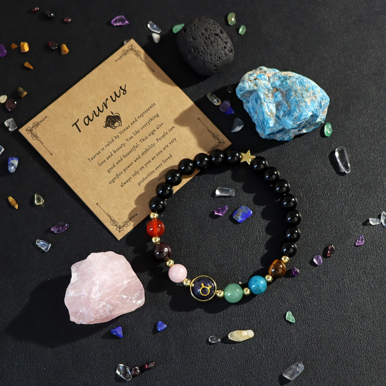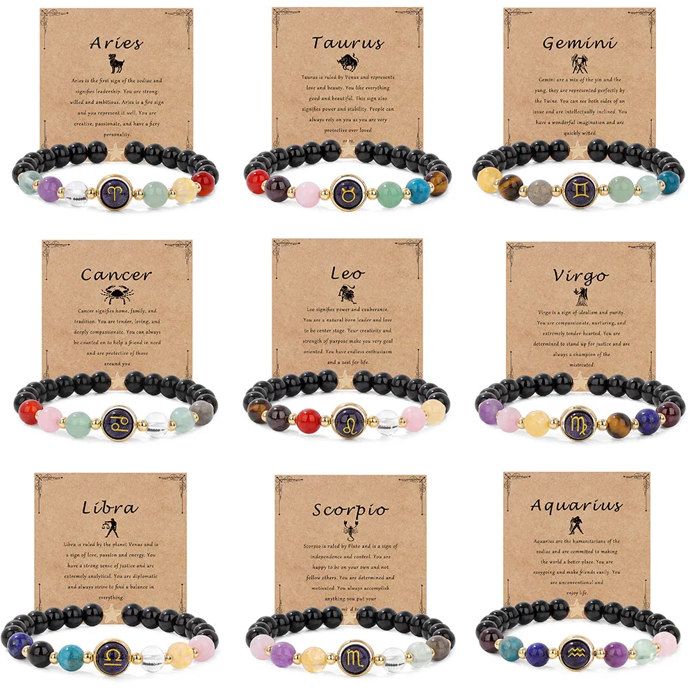 Channel the ancient wisdom of the cosmos with our Natural Stone Mineral Beads Constellation Bracelet. Each bracelet harnesses the unique energy of genuine stone beads paired with your zodiac's distinctive charm, creating a powerful connection to your celestial identity. Unisex in design and striking in appearance, it includes a detailed card unveiling your sign's hidden meanings and strengths. Don't just accessorize—transform your style while embracing your astrological destiny. The universe is calling—will you answer?