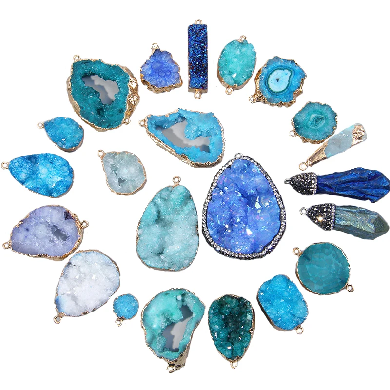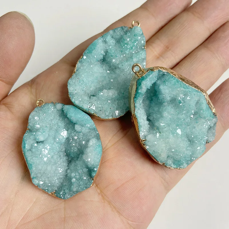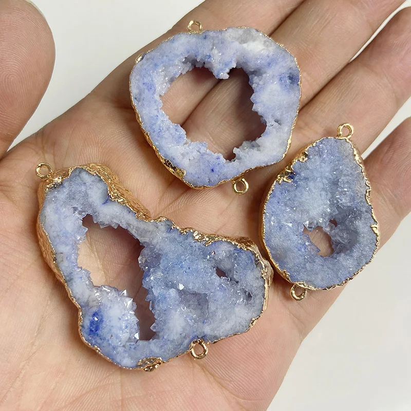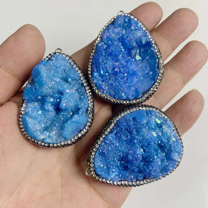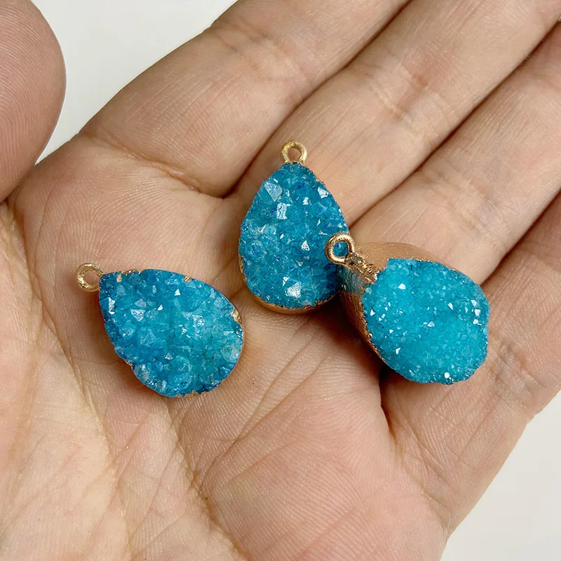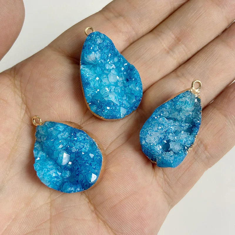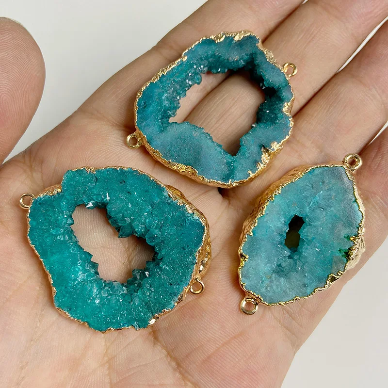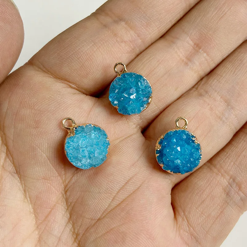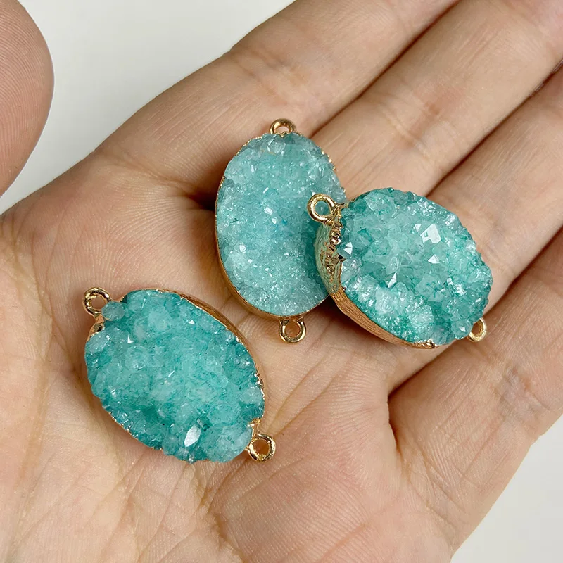 Blue Druzy Stone Connecter Copper Mineral Crystal Pendant Charm