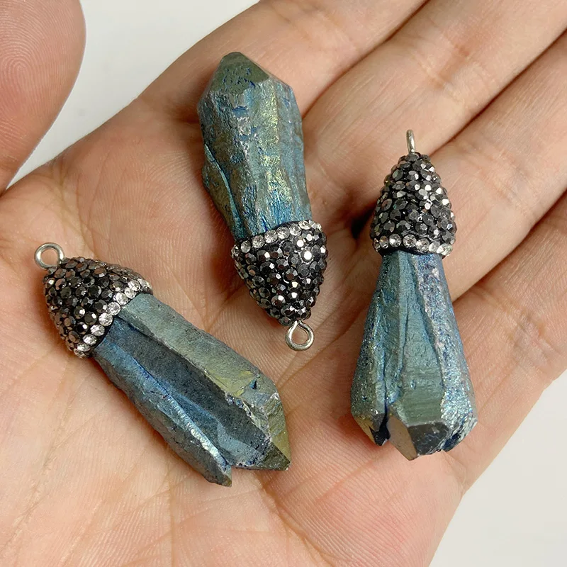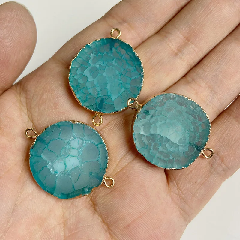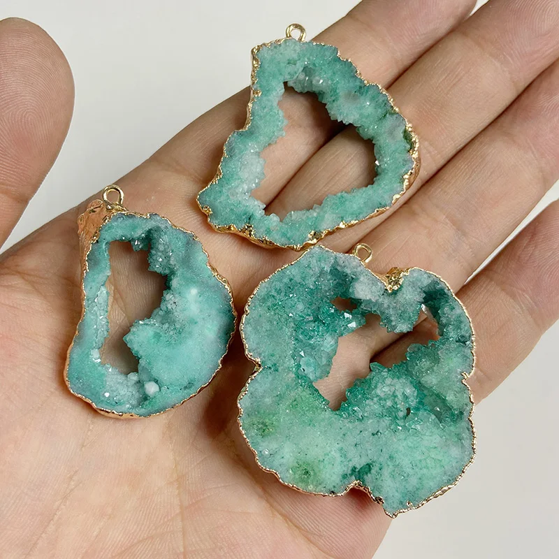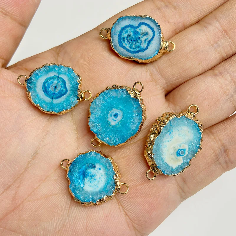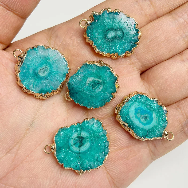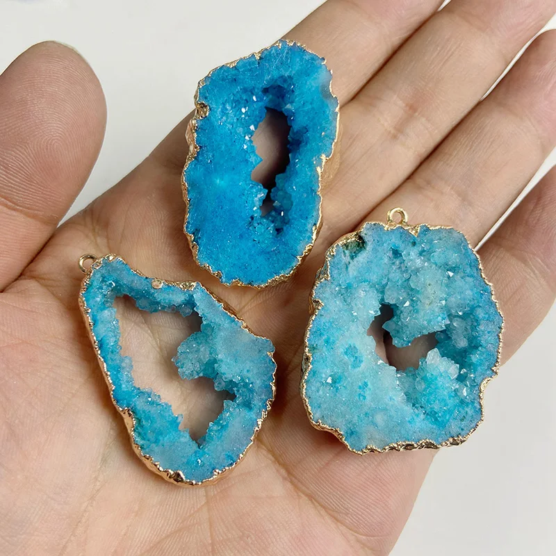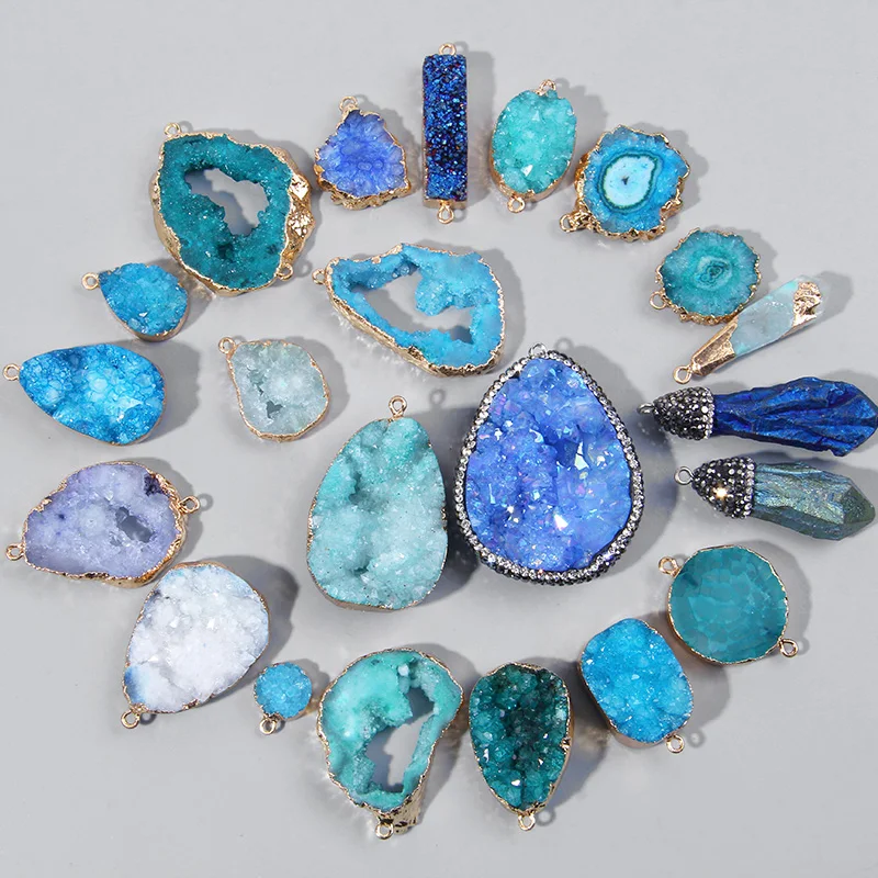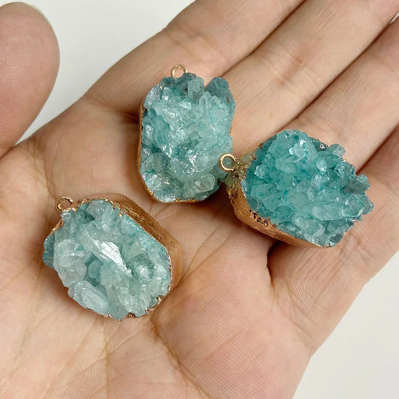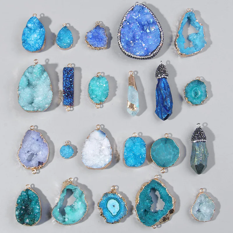 Blue Druzy Stone Connecter Copper Mineral Crystal Pendant Charm