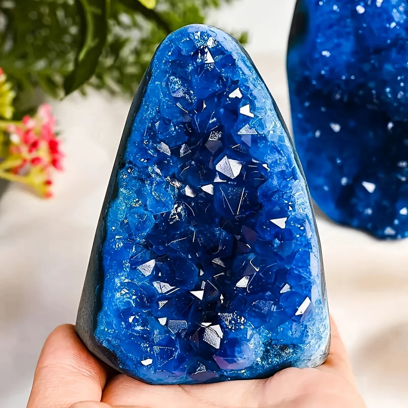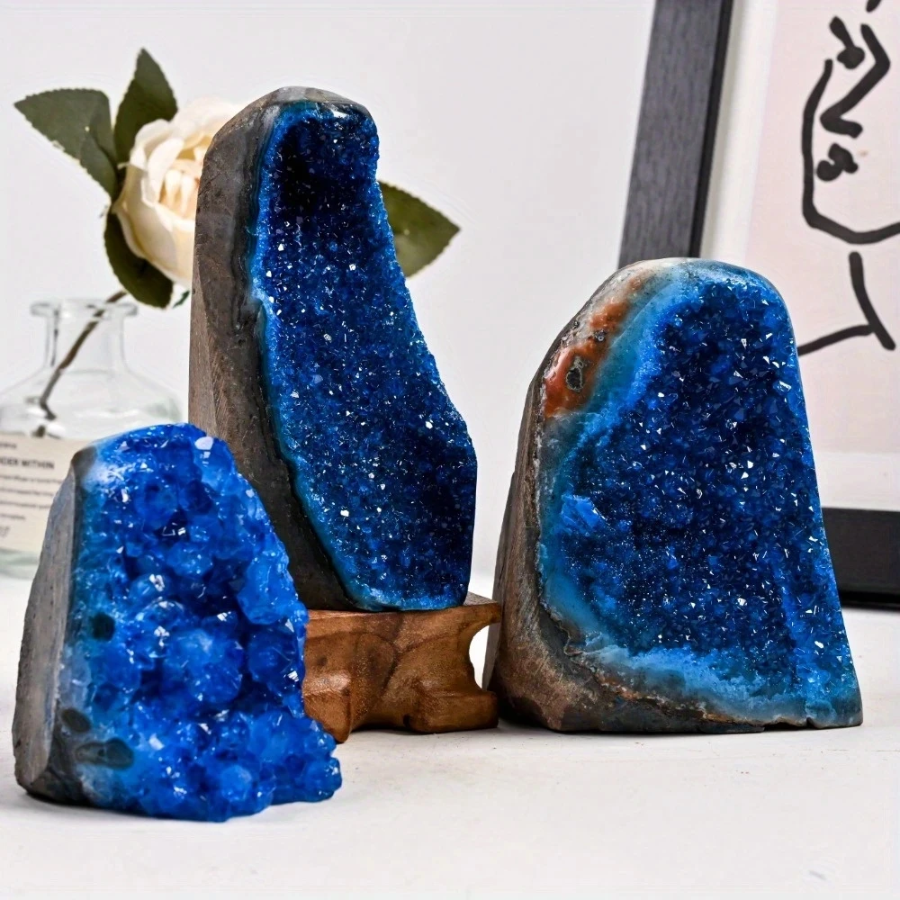 Transform your environment with this breathtaking blue crystal cluster, a natural wonder that commands attention in any room. Its deep azure tones and intricate geometric formations create an irresistible visual appeal that draws the eye and sparks conversation. Ideal for bohemian décor enthusiasts, this piece seamlessly complements living spaces, offices, and gathering areas where style matters. Display it proudly during family gatherings to showcase your refined taste, or keep it on your desk as a daily source of inspiration and calm. This authentic crystal treasure combines raw natural beauty with timeless elegance, making it an investment in both your space and your well-being.