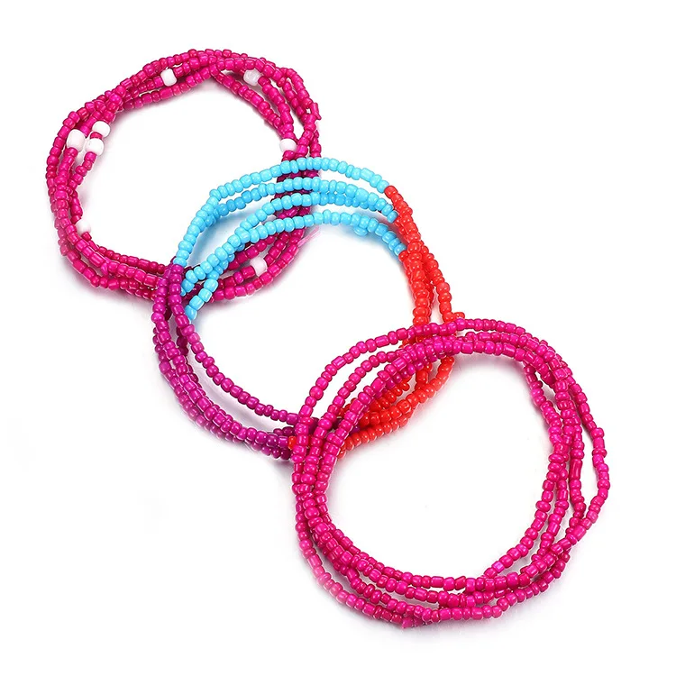 3Pcs/set Boho Colorful Elastic Rice Bead Anklet and Waist Beads