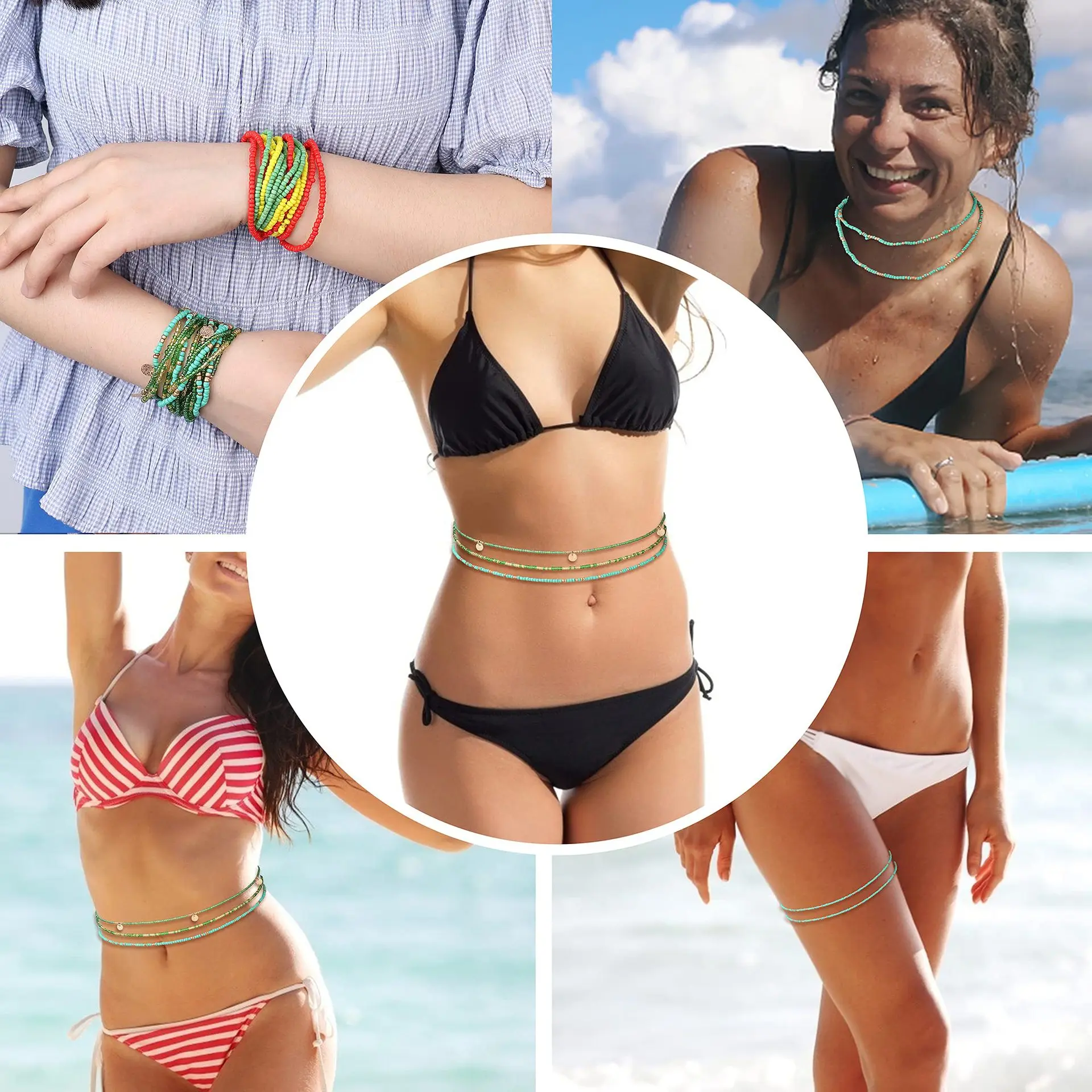 Colorful Rice Bead Anklet and Waist Bracelet Chains Sets