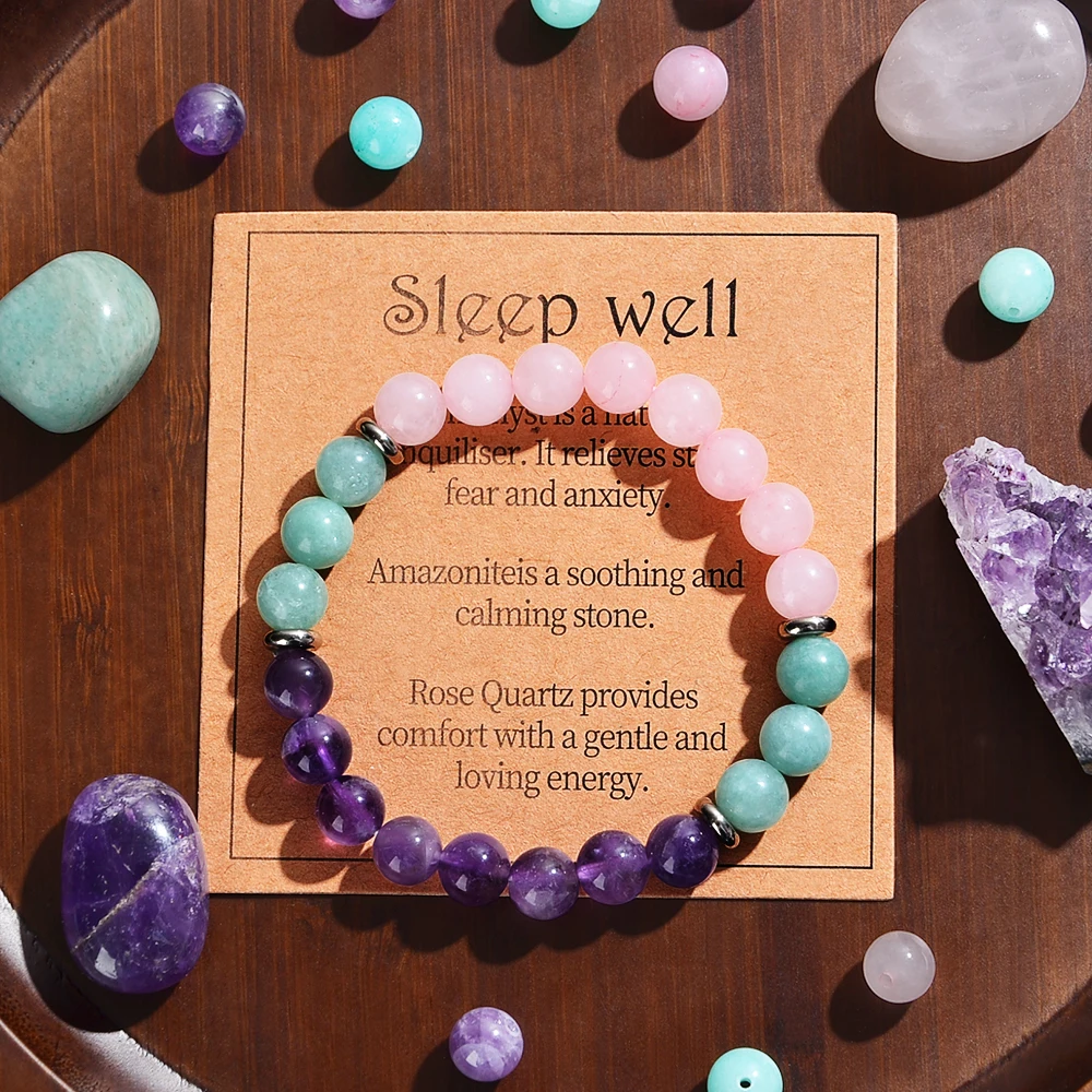 Discover calm and balance with this collection of six exquisite bracelets featuring Rose Quartz, Amethyst, and Moonstone. The Rose Quartz Sleep Bracelet promotes restful nights, while the Amethyst Eliminates Worries Bracelet helps ease stress and anxiety. The Moonstone New Beginning Bracelet inspires fresh starts and positive energy. Crafted to support your well-being, these stylish accessories blend beauty with wellness, making them the perfect addition to your daily routine or a thoughtful gift for someone special. Embrace tranquility and transformation with these meaningful bracelets.