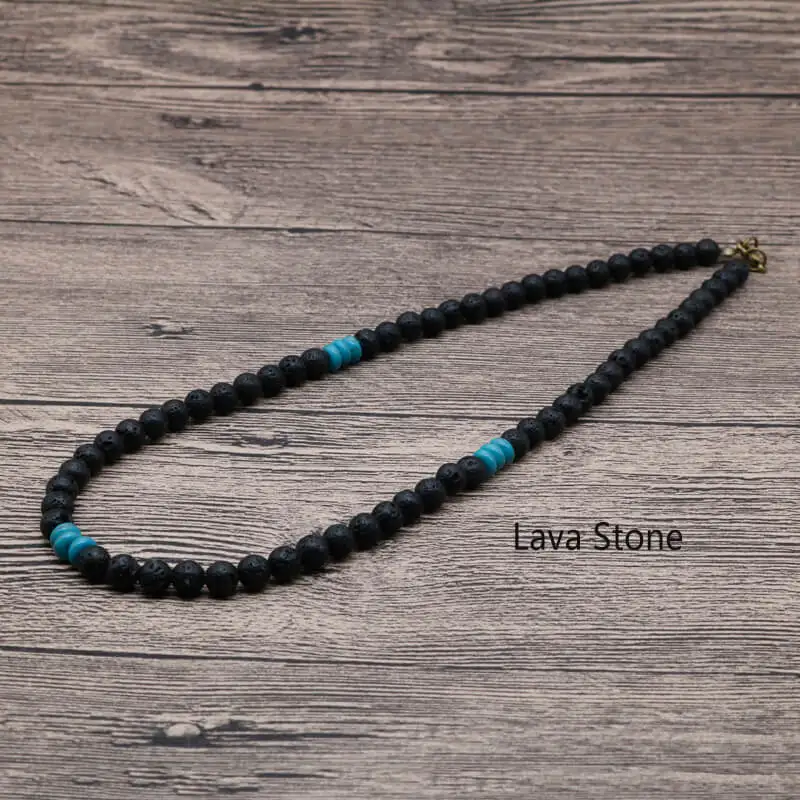 Earths Energy Natural Lava Stone Unique Beaded Necklace