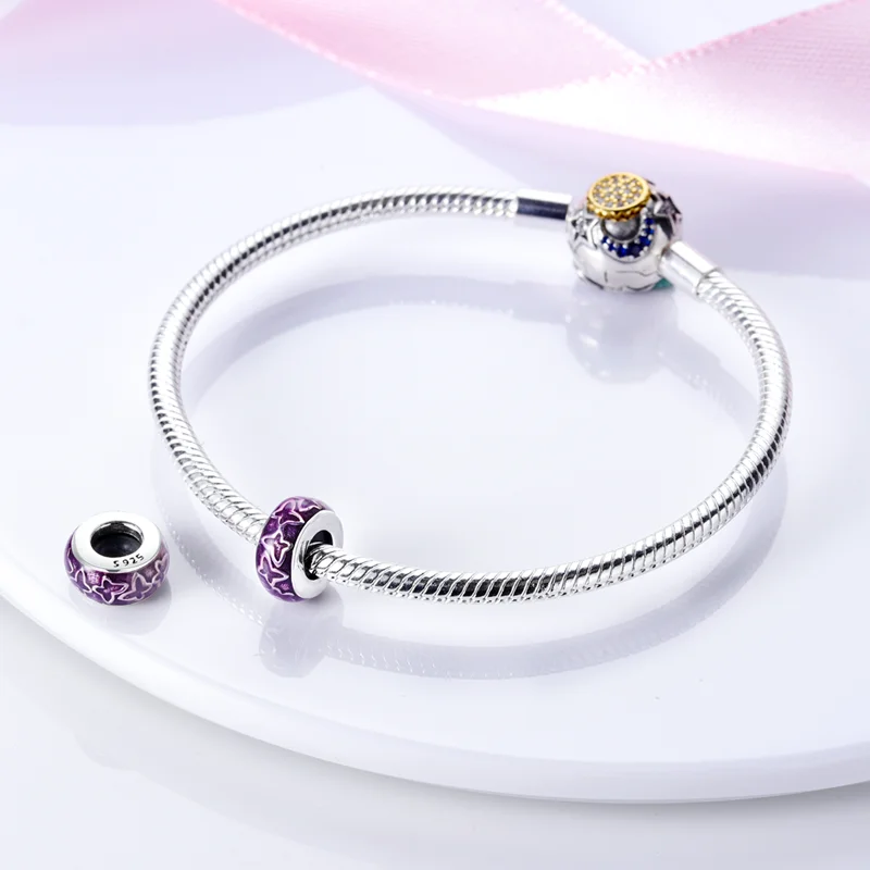 Indulge in the luxurious and unique beauty of our 925 Silver Purple Series Charm Beads. Adorn yourself with Beautiful unique pieces and choose from our various styles of charming flower, heart, star, butterfly, and grape designs, and many more. These Pieces effortlessly elevates any outfit. Perfect for showcasing your originality and personal style, these Charms are a must-have for any bracelet adding exquisite taste. Makes a stunning and thoughtful gift for any jewelry lover.
