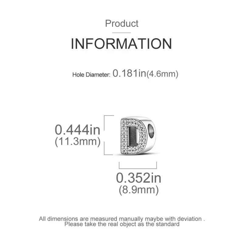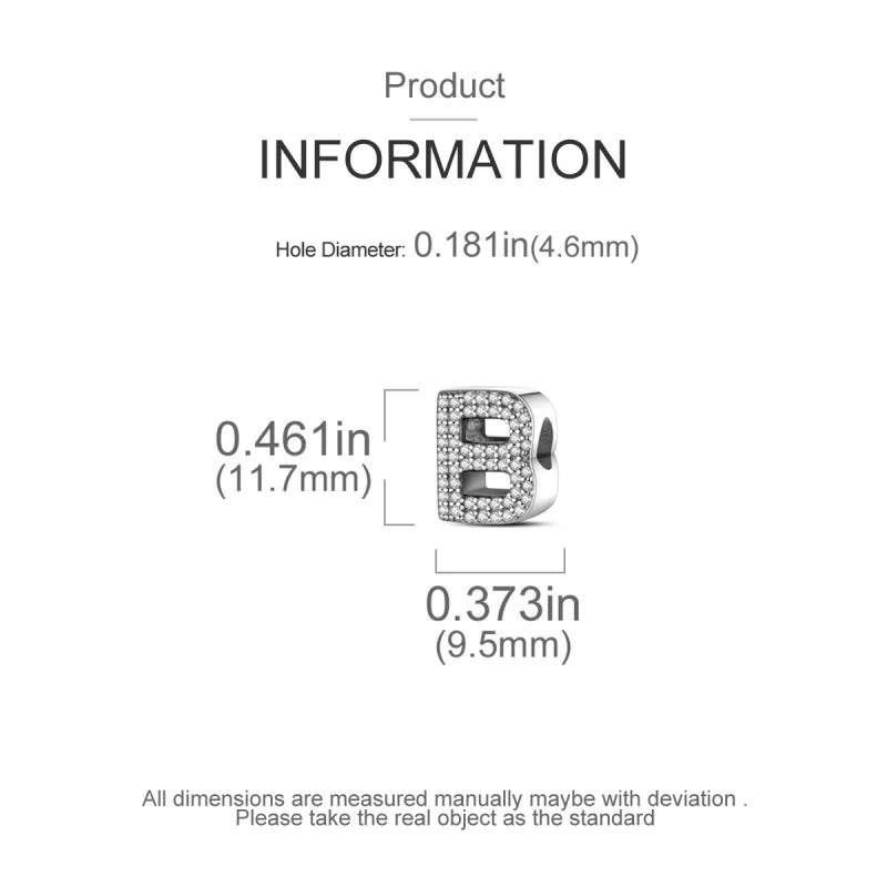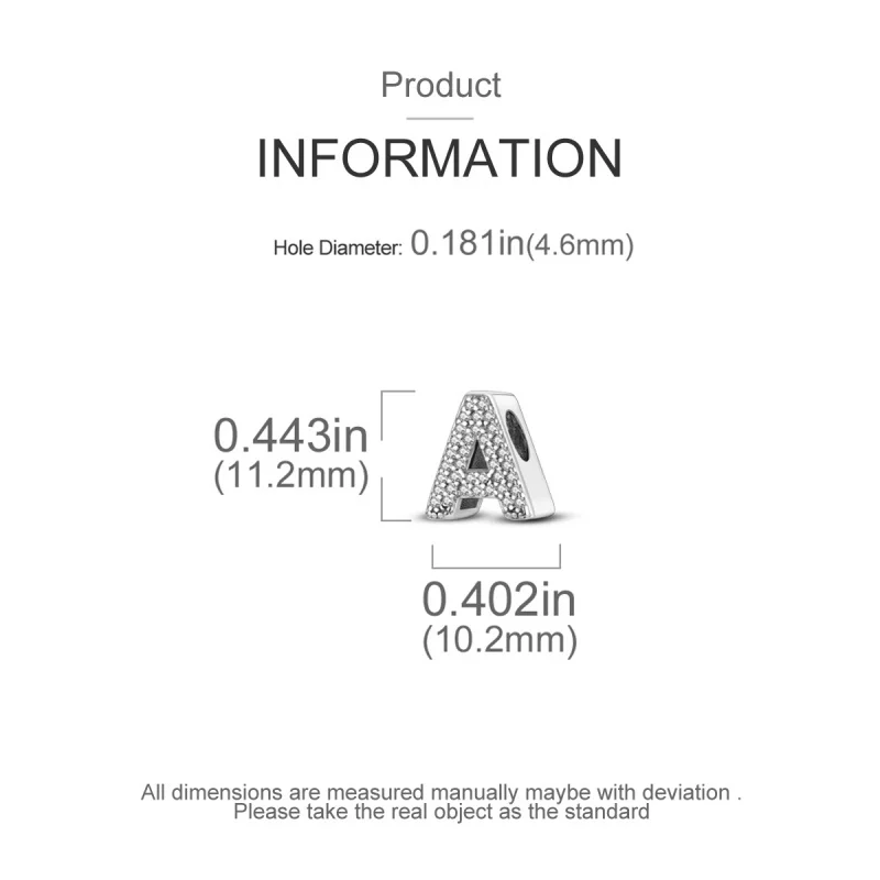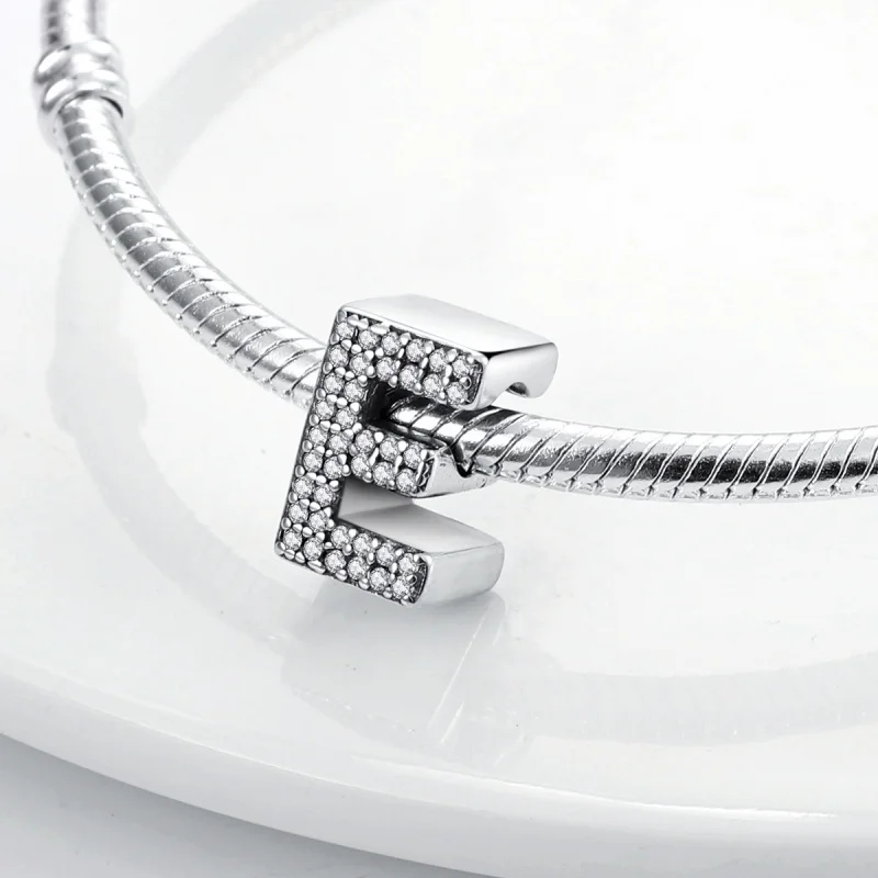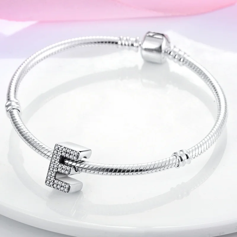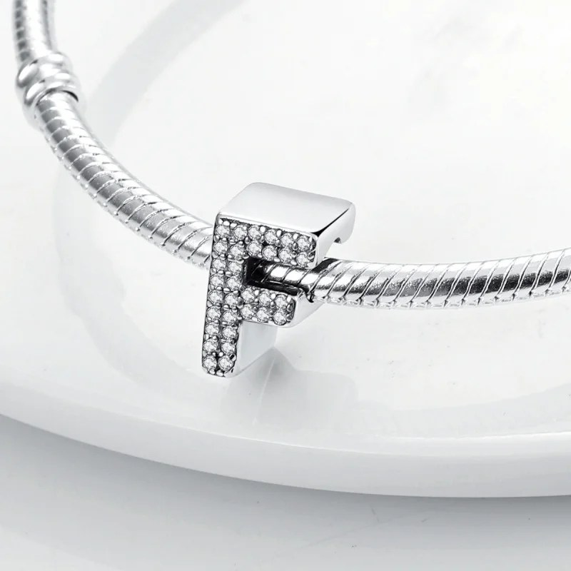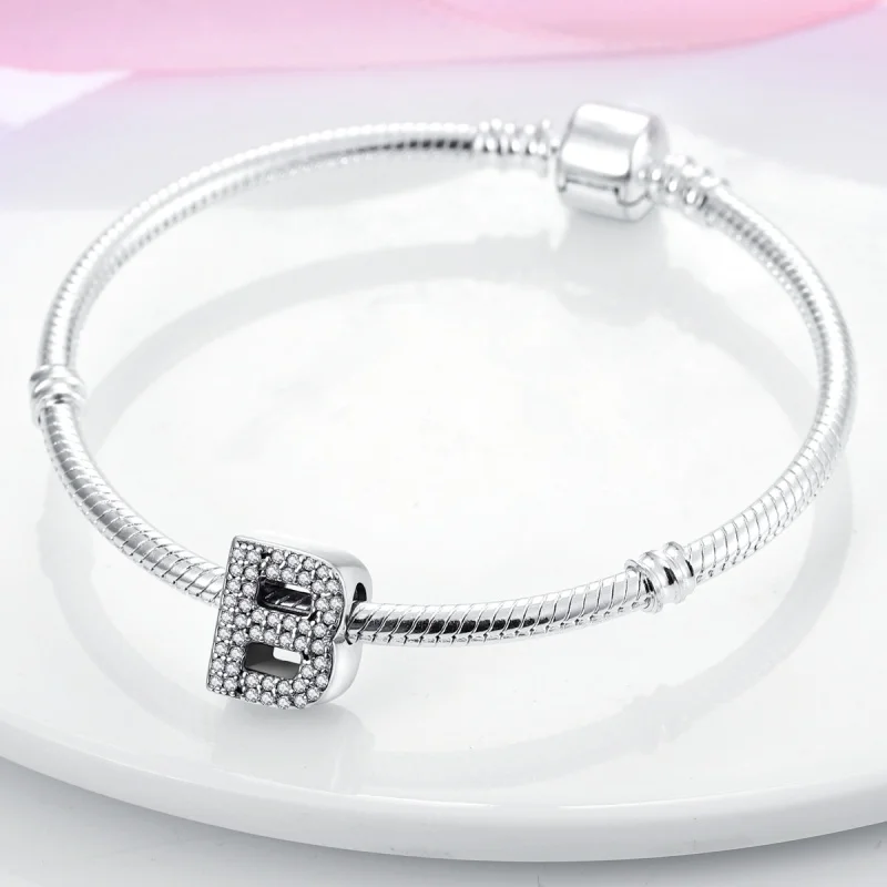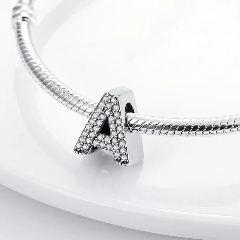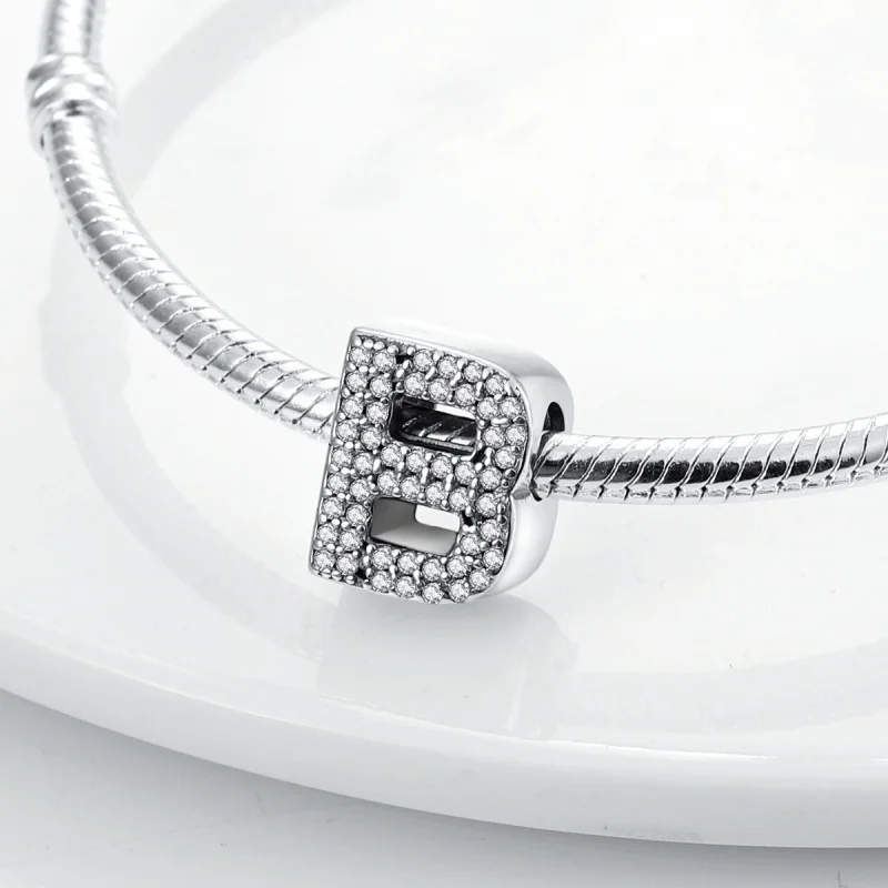 Create a personalized accessory with these 925 Sterling Silver alphabet beads from the Silver Series. Each letter charm features shiny zircon stones, adding sparkle and a touch of luck to your original bracelet or necklace. Designed to fit perfectly on 3mm bands, these lucky letter beads allow you to craft meaningful, stylish jewelry that reflects your individuality with elegance and charm.