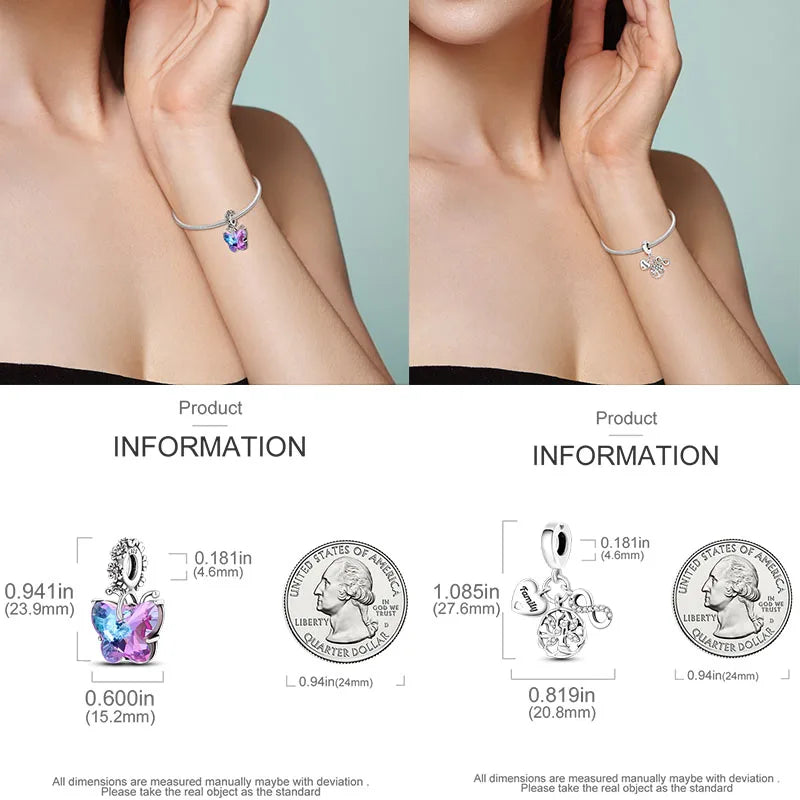 Elevate your style with our stunning 925 sterling silver charms. Showcasing colorful sunflowers, delicate butterflies, and even an adorable aircraft and earth design, each charm is a work of art. Perfect for gifting, these charms fit any pendant jewelry, adding a touch of beauty to any outfit.