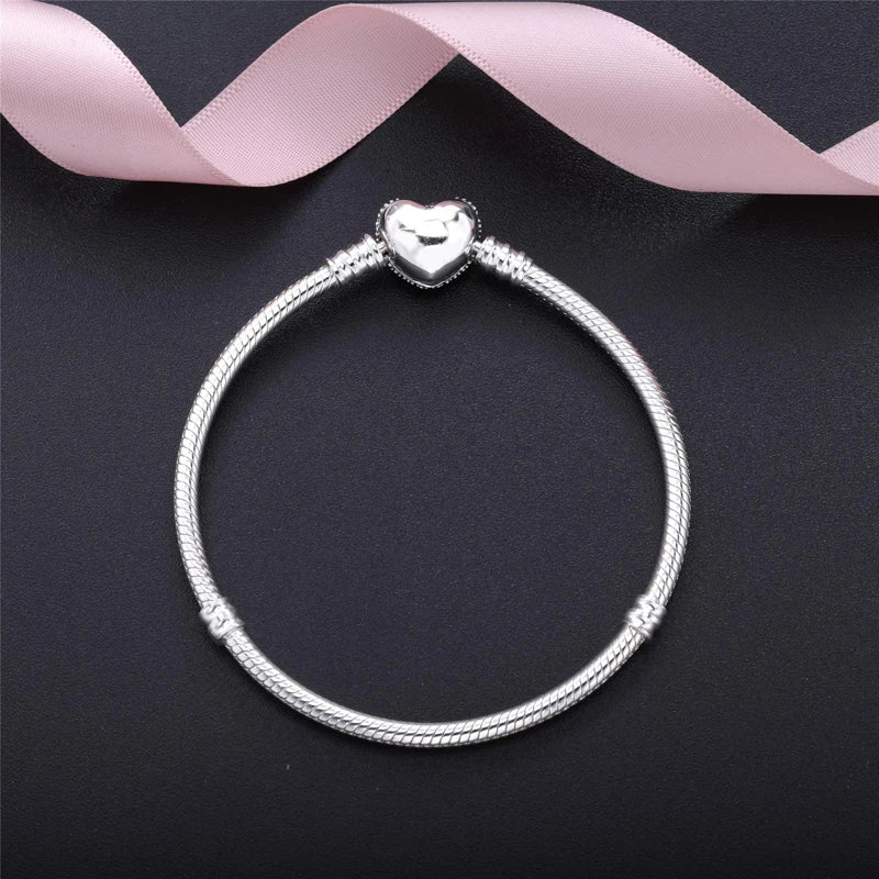 This elegant bracelet bangle is crafted from 100% genuine 925 sterling silver, ensuring lasting shine and durability. Featuring a delicate snake chain design and a charming heart clasp, it offers a secure fit while adding a touch of romance to any outfit. Perfectly compatible with bead charms, this versatile piece seamlessly blends classic style with personal expression, making it an ideal accessory or gift for women who appreciate fine jewelry. Elevate your collection with this timeless bracelet that effortlessly complements both casual and formal looks.