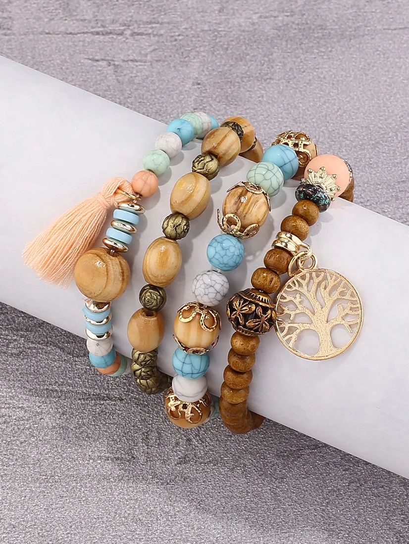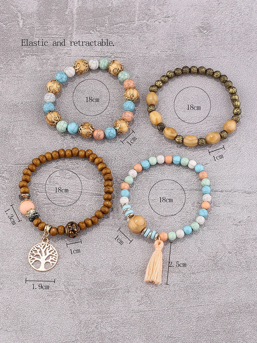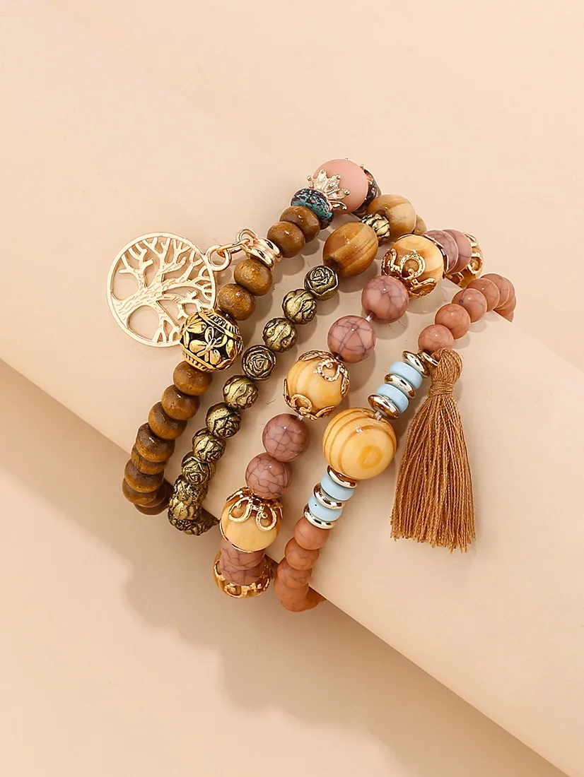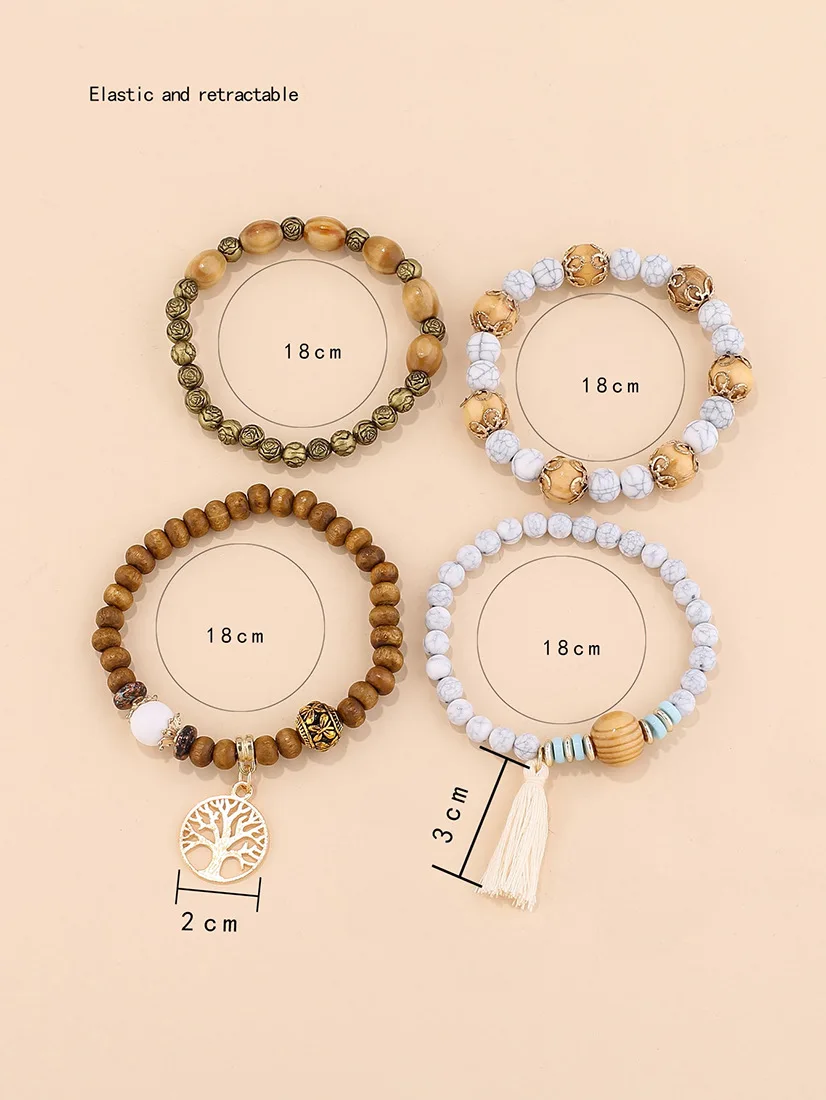 Enhance your style effortlessly with the Tree Of Life Tassels Charm Bracelet Set. Featuring trendy tassels, natural wooden beads, and a flexible elastic chain, this set offers both comfort and chic appeal. The Tree of Life charm connects you to nature’s strength, adding an empowering and meaningful touch to any outfit. Perfect for girls who want to express their unique style with a symbol of growth and vitality.