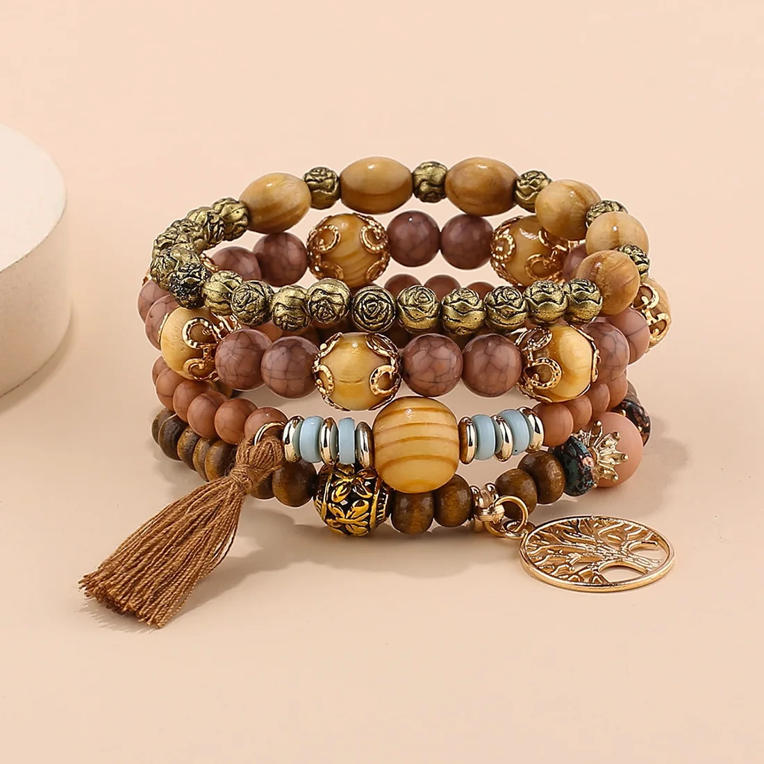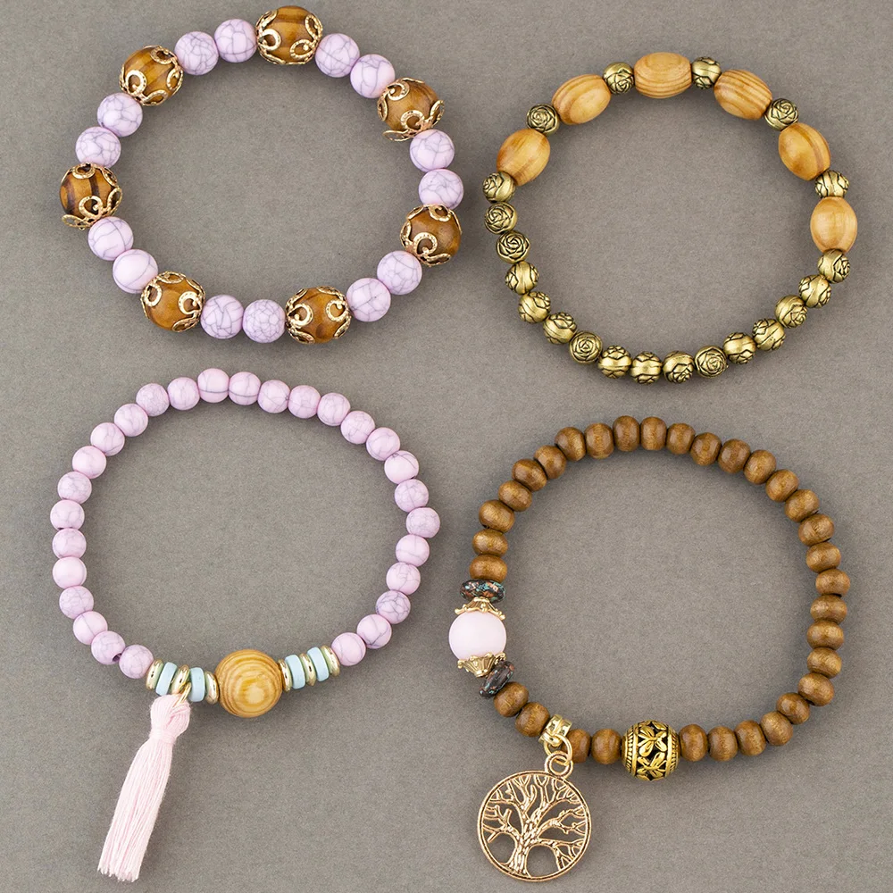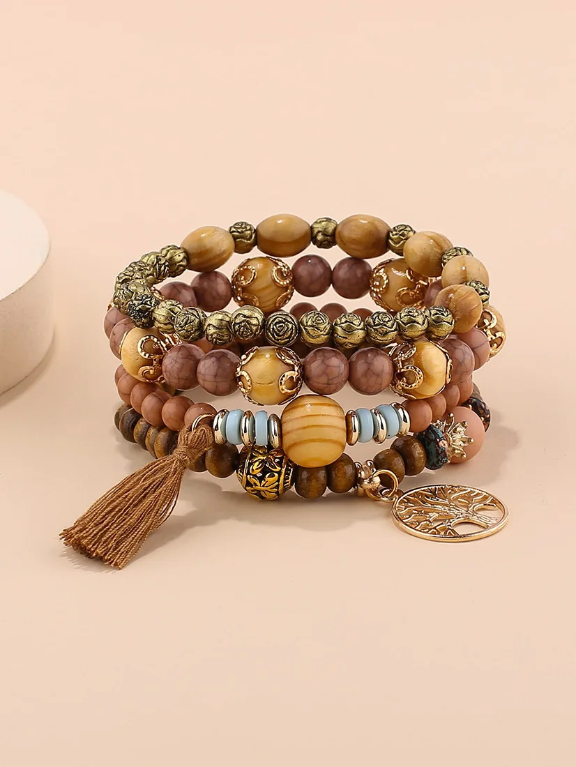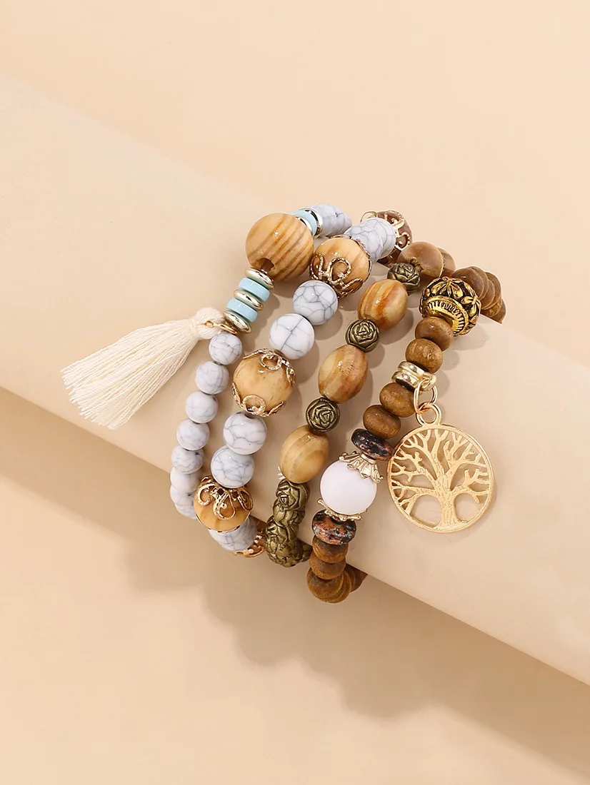 Enhance your style effortlessly with the Tree Of Life Tassels Charm Bracelet Set. Featuring trendy tassels, natural wooden beads, and a flexible elastic chain, this set offers both comfort and chic appeal. The Tree of Life charm connects you to nature’s strength, adding an empowering and meaningful touch to any outfit. Perfect for girls who want to express their unique style with a symbol of growth and vitality.