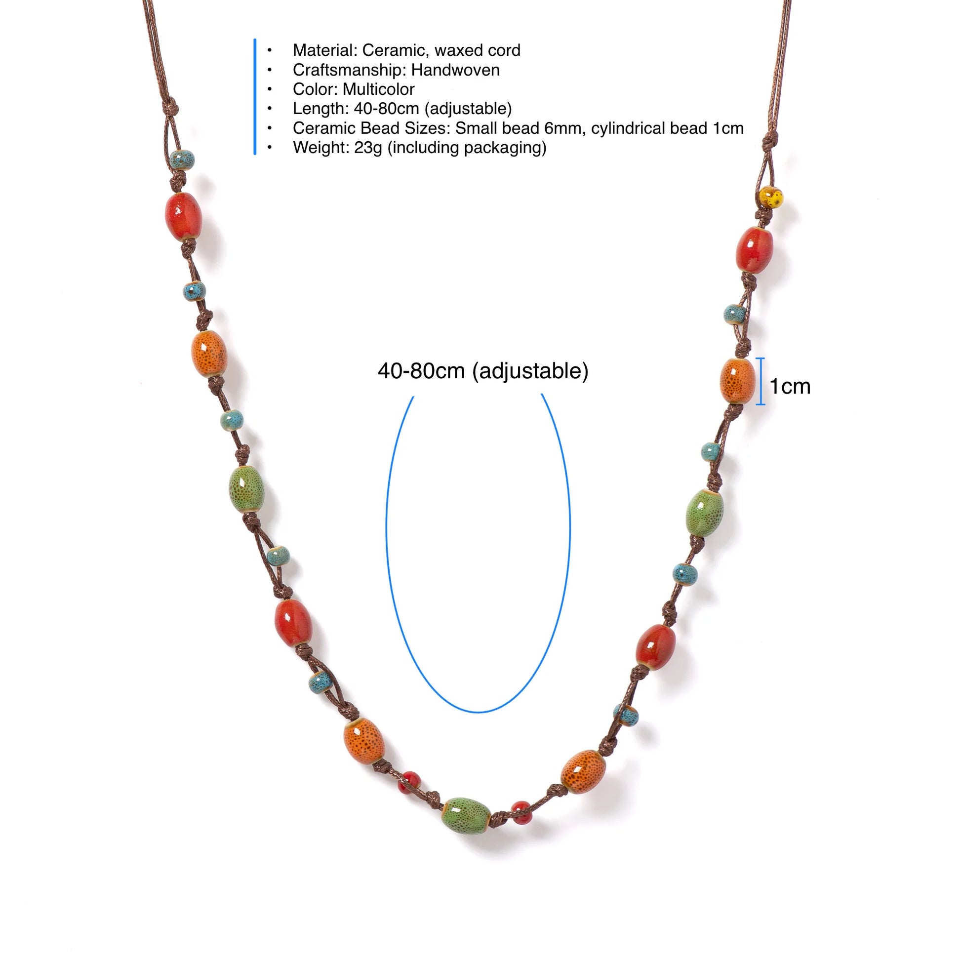 Discover the perfect blend of style and versatility with this colorful handmade ceramic necklace and bracelet set. Adjustable from 40 to 80 cm, this two-in-one boho jewelry piece allows you to effortlessly switch between a necklace and bracelet to suit any occasion. Each piece is uniquely crafted, making it an exceptional gift for those who love distinctive, artisan accessories that stand out. Elevate your look with vibrant colors and handcrafted charm that adds both personality and elegance to your everyday style.