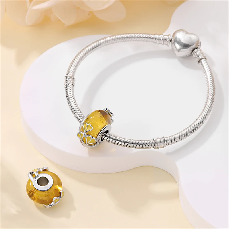 Unlock your bracelet's full potential with our breathtaking 925 sterling silver charm. Featuring intricate flower and feather designs in vivid colors, complemented by shimmering luminous glass beads, this ocean-inspired piece demands attention. Why blend in when you can stand out? Elevate your DIY jewelry collection with this must-have charm that reflects your exceptional taste and creativity. Your wrist deserves nothing less!
