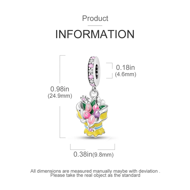 This exquisite 925 silver charm captures the delicate beauty of a romantic bouquet, symbolizing the language of flowers in every detail. Designed to perfectly complement Panache original bracelets, it adds a refined and meaningful touch to your jewelry collection. Its elegant craftsmanship makes it an ideal gift for expressing love and affection, turning any bracelet into a timeless keepsake. Elevate your style and celebrate special moments with this fine jewelry charm that blends sophistication and heartfelt sentiment.