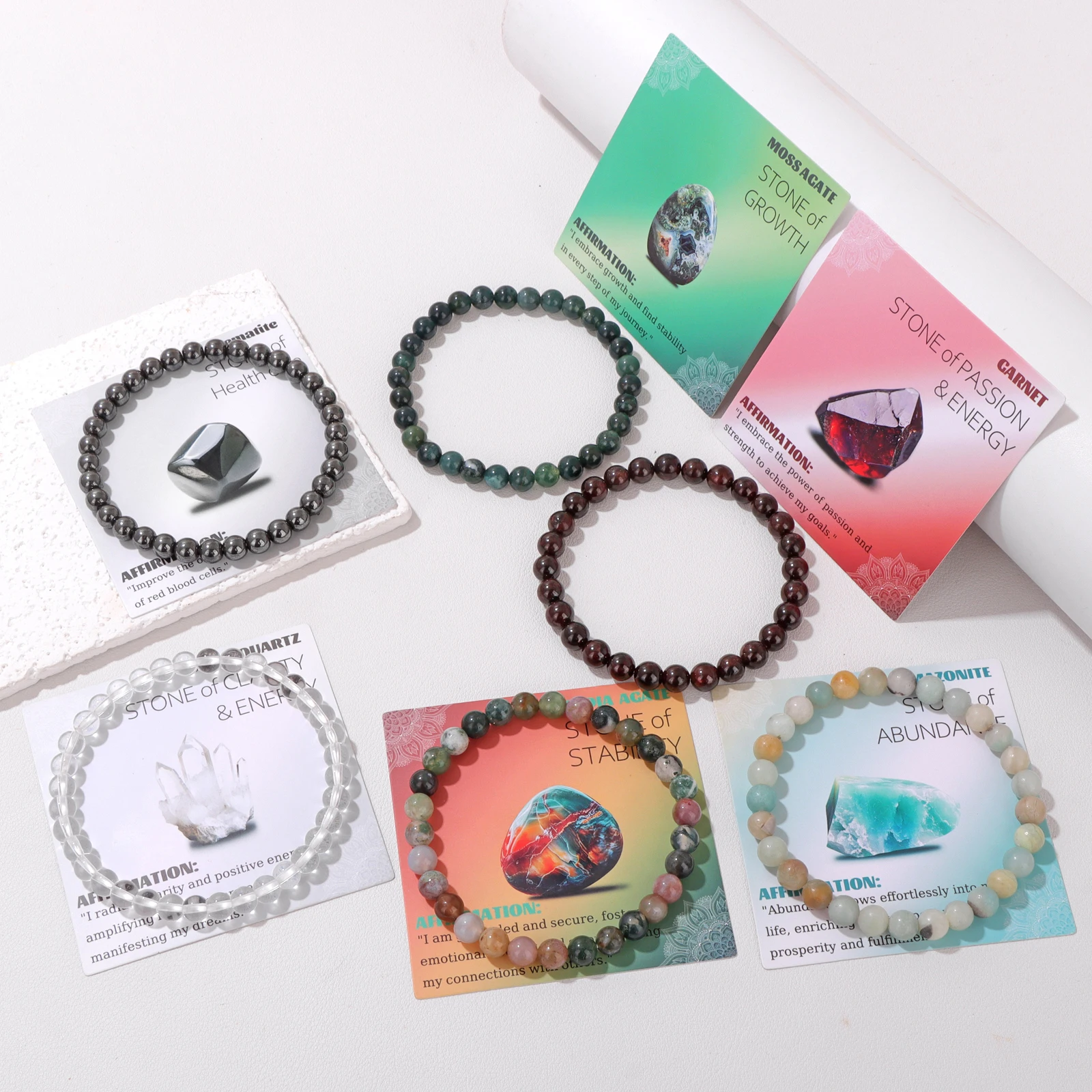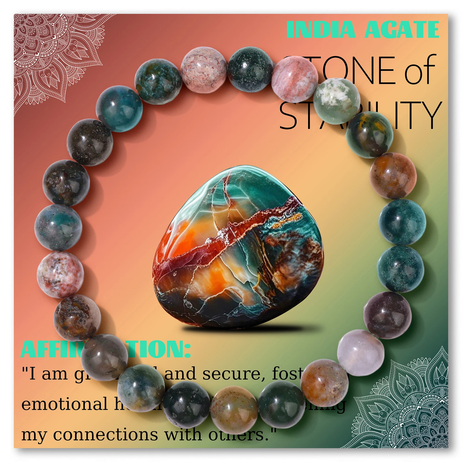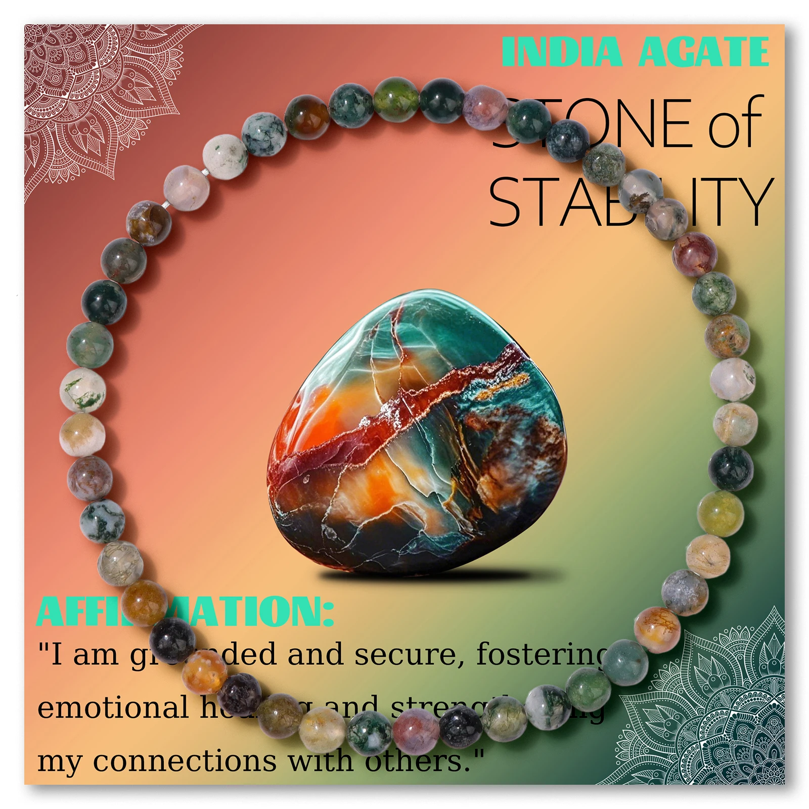 Embrace timeless elegance with our Natural Indian Agates Stone Bracelet, featuring beautifully polished round beads in 4mm, 6mm, and 8mm sizes. Crafted for both men and women, this stretch bracelet combines comfort with sophisticated style, making it perfect for everyday wear or special occasions. Each piece showcases the unique patterns and earthy tones of genuine agate stone, known for its grounding properties. The flexible design ensures a perfect fit for any wrist, while the included informational card adds a thoughtful touch. Whether you're seeking a meaningful accessory or a gift with character, this versatile bangle delivers natural beauty and lasting quality.