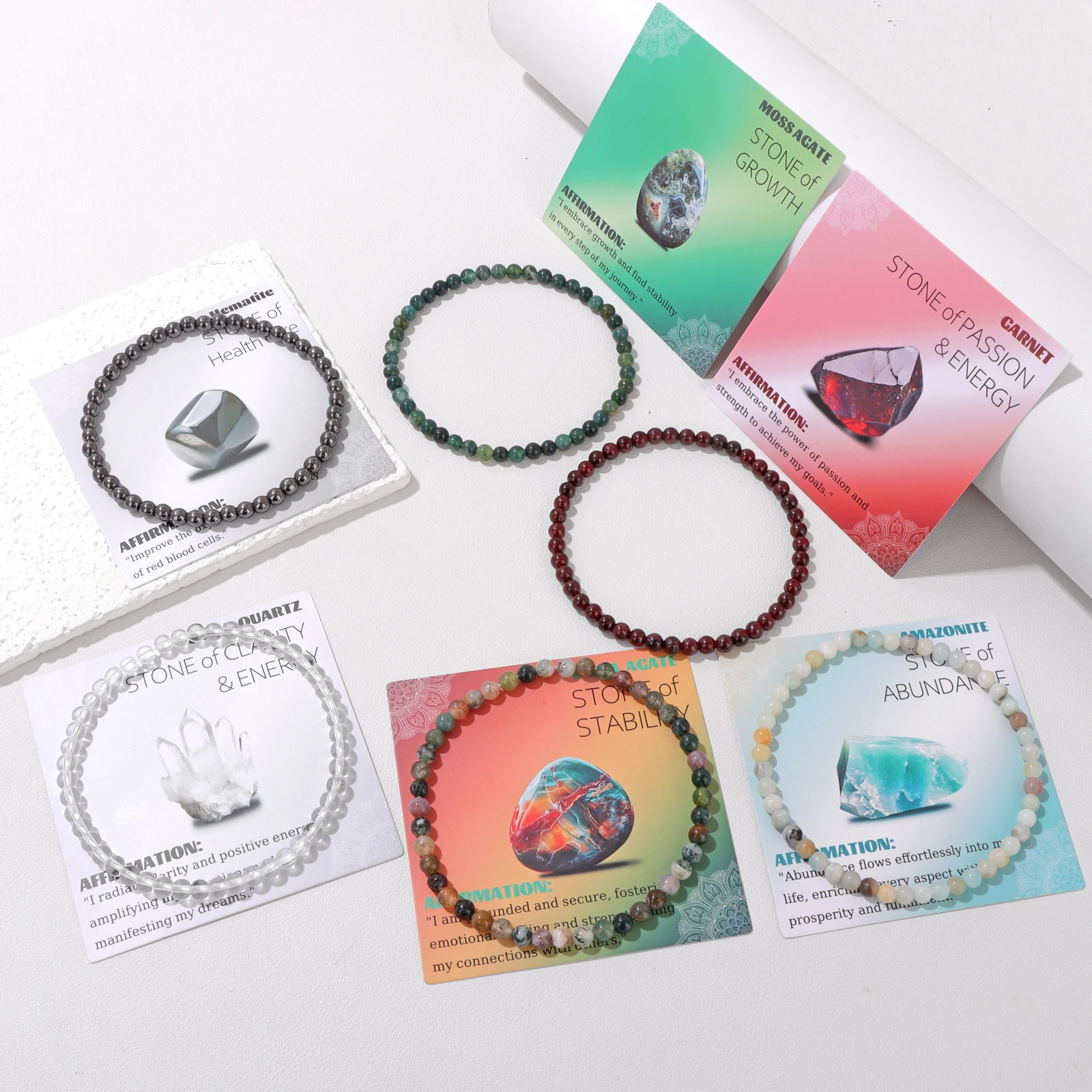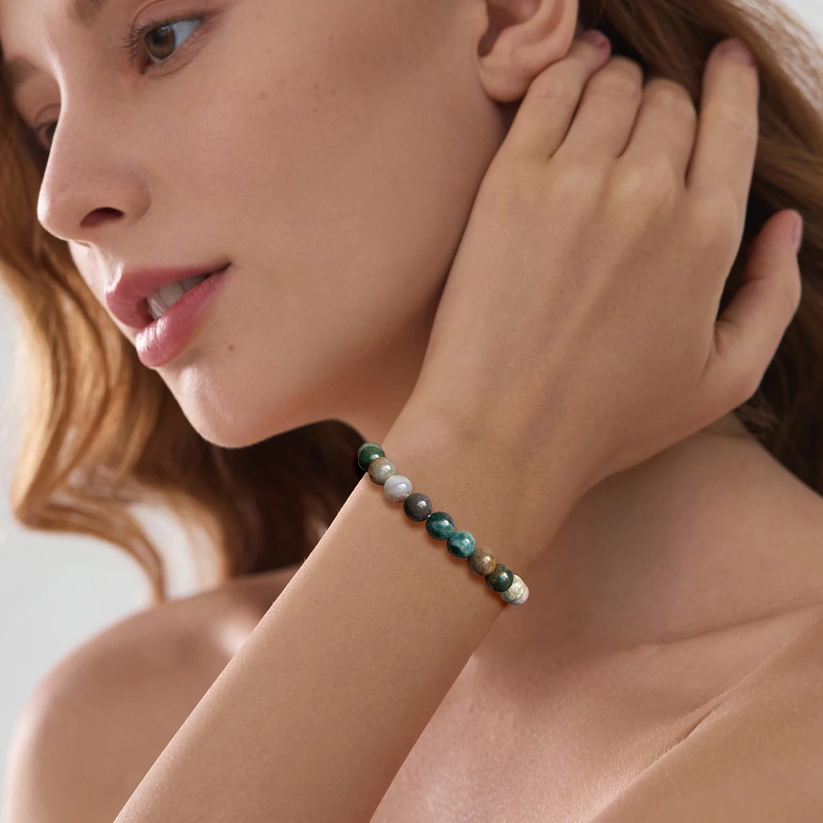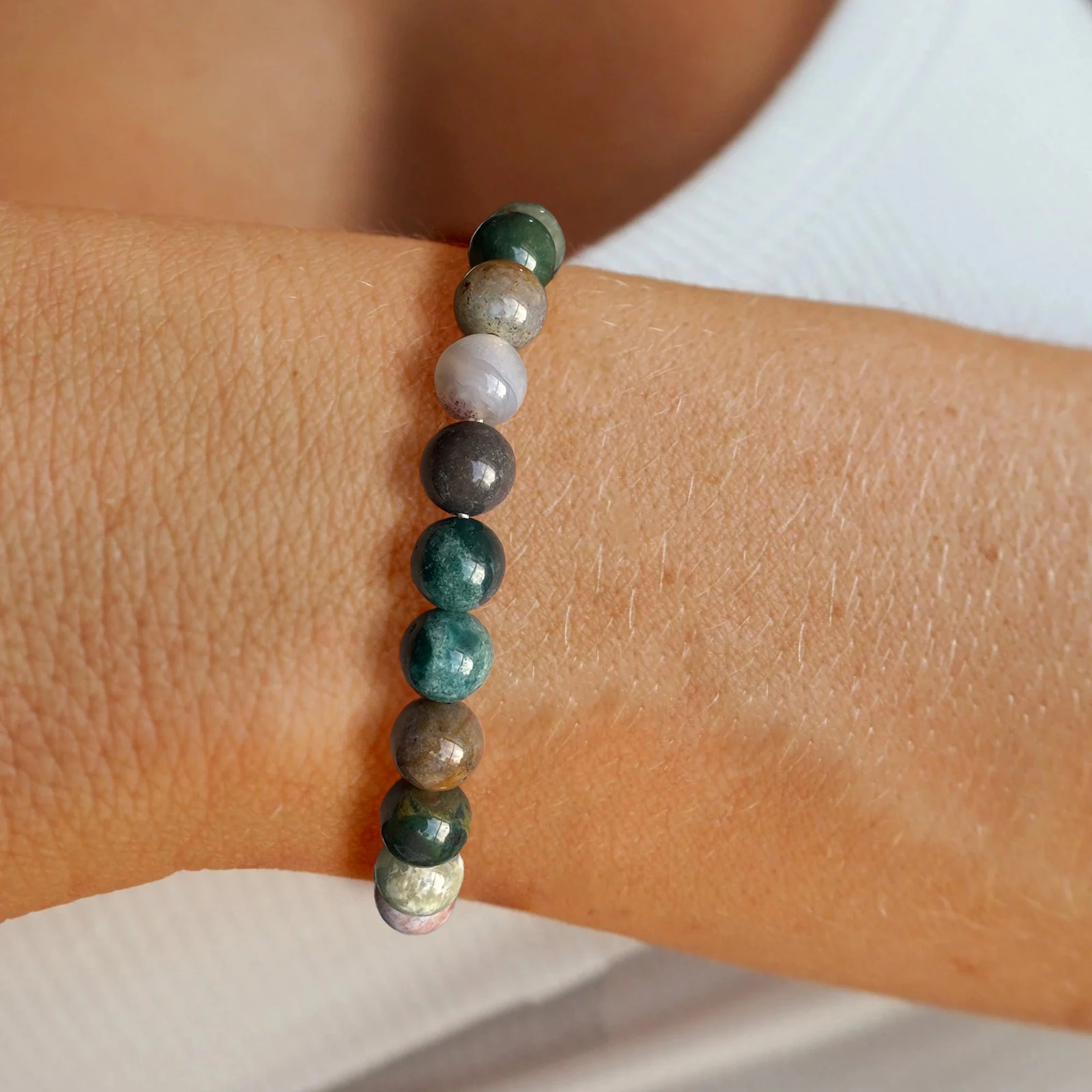 Embrace timeless elegance with our Natural Indian Agates Stone Bracelet, featuring beautifully polished round beads in 4mm, 6mm, and 8mm sizes. Crafted for both men and women, this stretch bracelet combines comfort with sophisticated style, making it perfect for everyday wear or special occasions. Each piece showcases the unique patterns and earthy tones of genuine agate stone, known for its grounding properties. The flexible design ensures a perfect fit for any wrist, while the included informational card adds a thoughtful touch. Whether you're seeking a meaningful accessory or a gift with character, this versatile bangle delivers natural beauty and lasting quality.