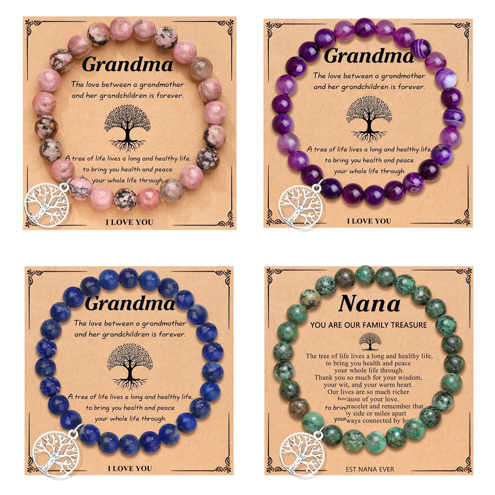 Honor The Grands Natural Stone Tree of Life Charm Bracelet Cards