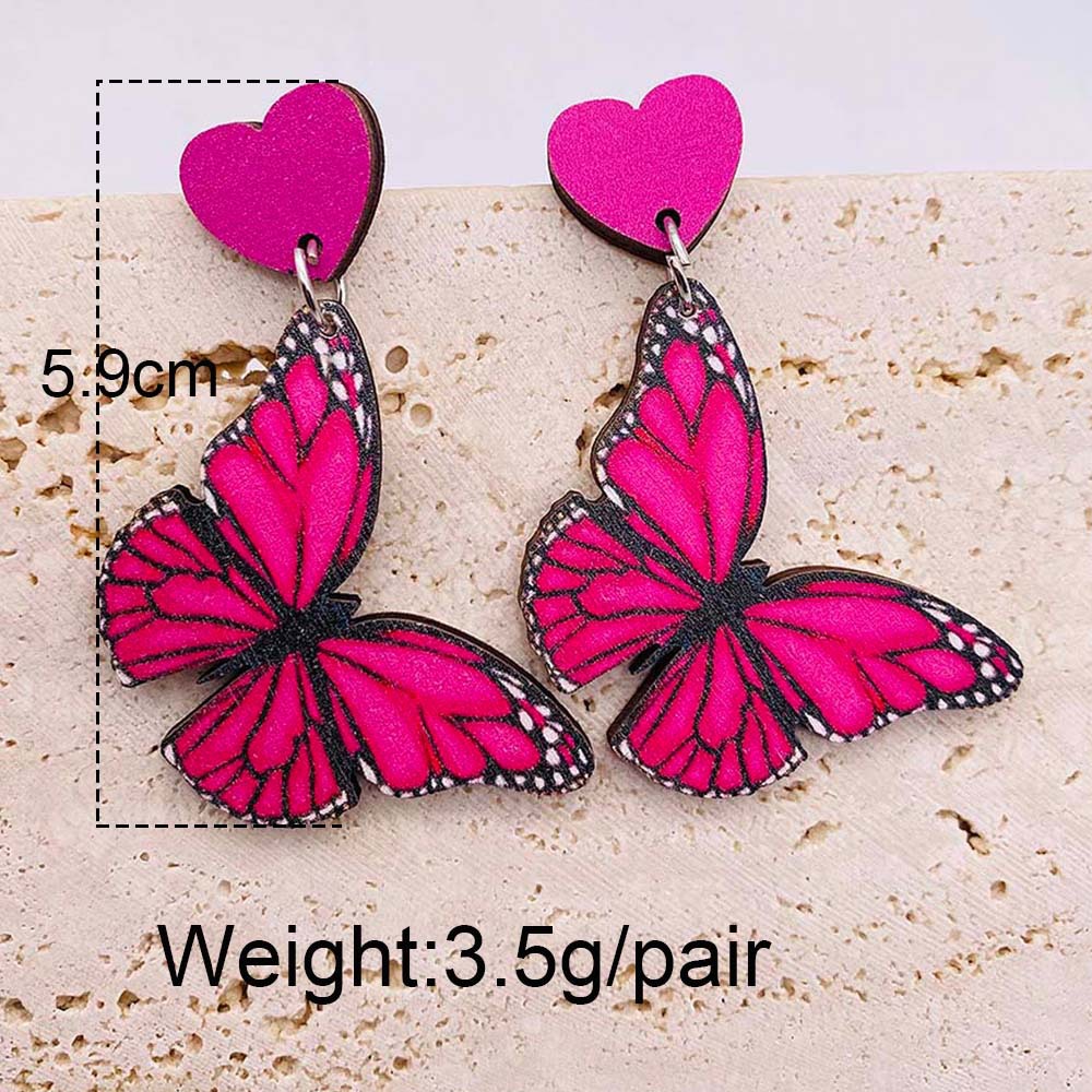 Add a vibrant touch to your style with these colorful butterfly wood earrings. Featuring geometric wing pendants, they blend natural wood texture with playful design for a unique accessory. Perfect for women who want to express their individuality, these lightweight earrings bring a charming, artistic flair to any outfit while remaining comfortable to wear all day. The heart-shaped studs add a delicate detail, making them a great choice for casual or special occasions. Elevate your jewelry collection with this standout pair that celebrates beauty and creativity.