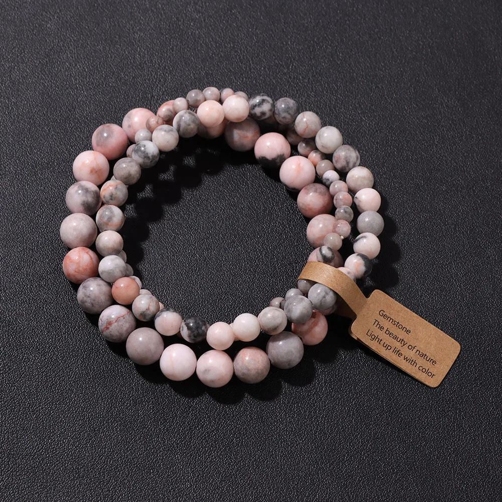 Captivate attention with our Pink Zebra Beads Bracelet Set, where striking design meets natural beauty. Each bracelet features genuine stones—turquoise, agate, tiger eye, and quartz—in versatile 4mm, 6mm, and 8mm sizes that complement any wrist. The distinctive pink zebra pattern creates a bold statement piece that transitions effortlessly from casual to formal occasions. Designed for universal appeal, these bracelets make thoughtful gifts for friends regardless of gender. Why settle for ordinary accessories when you can showcase your exceptional taste with these unique, earth-inspired treasures?