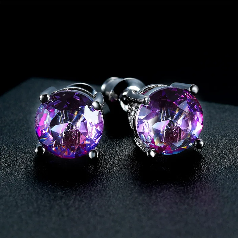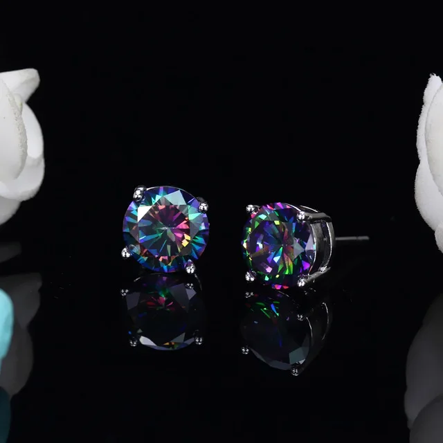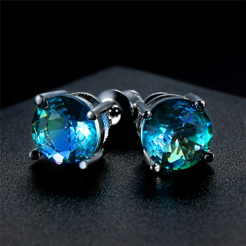 These round stud earrings feature dazzling red and green crystals that shimmer with a mystic rainbow fire, creating a captivating play of blue and green zircon hues. Designed for both women and men, they add a vibrant touch to wedding attire or everyday style. Lightweight and versatile, these double earrings bring a unique sparkle that enhances any look with elegant color and brilliance.
