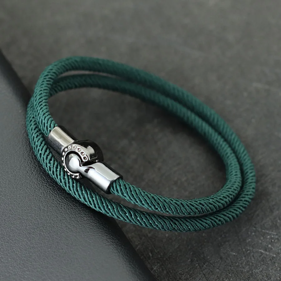 This rugged yet stylish rope bracelet combines practicality with masculine appeal. Featuring a convenient magnetic buckle and durable bilayer construction, it's perfect for outdoor enthusiasts and everyday wear. The nautical-inspired design adds a touch of adventure to any outfit. An impressive, thoughtful gift that shows you understand his active lifestyle.