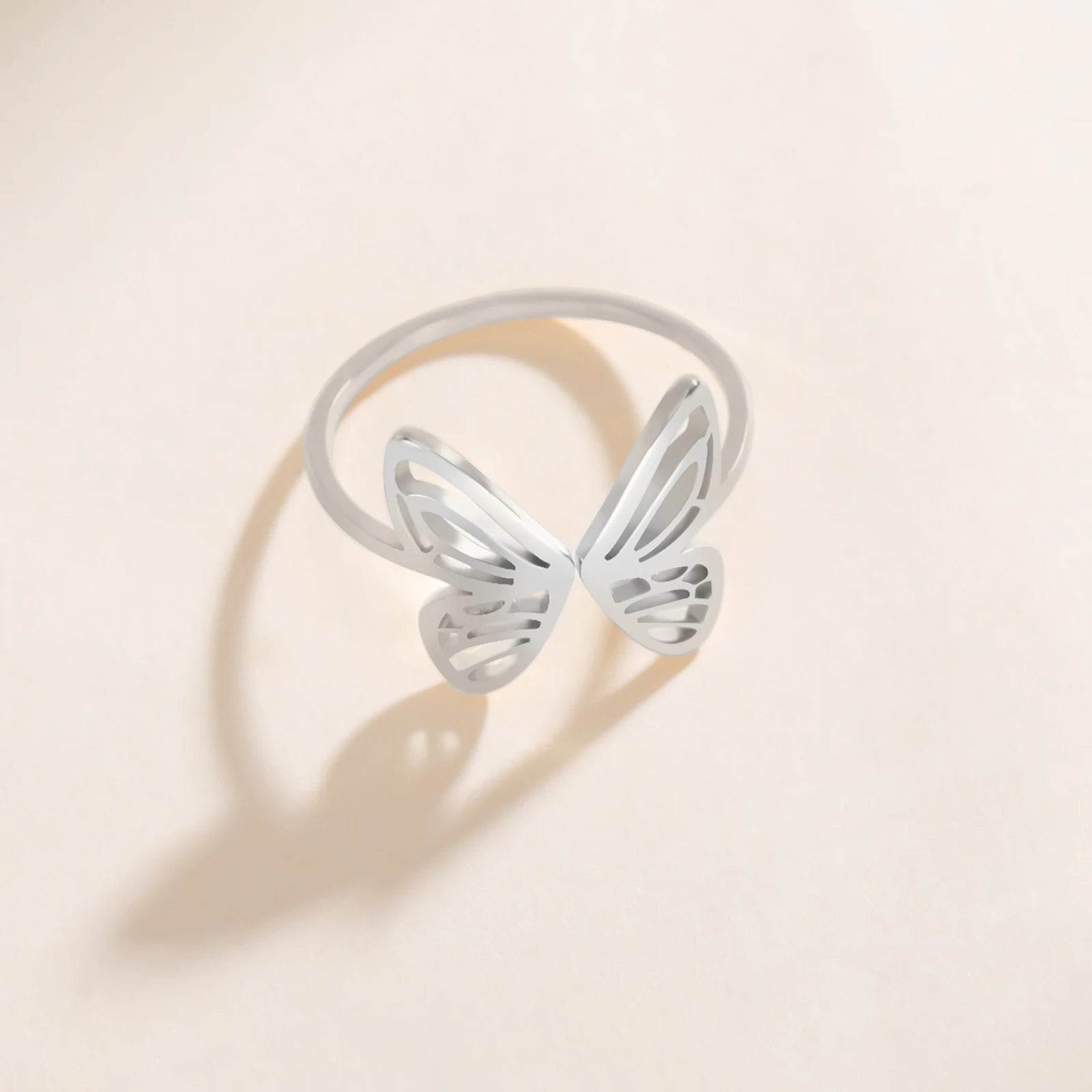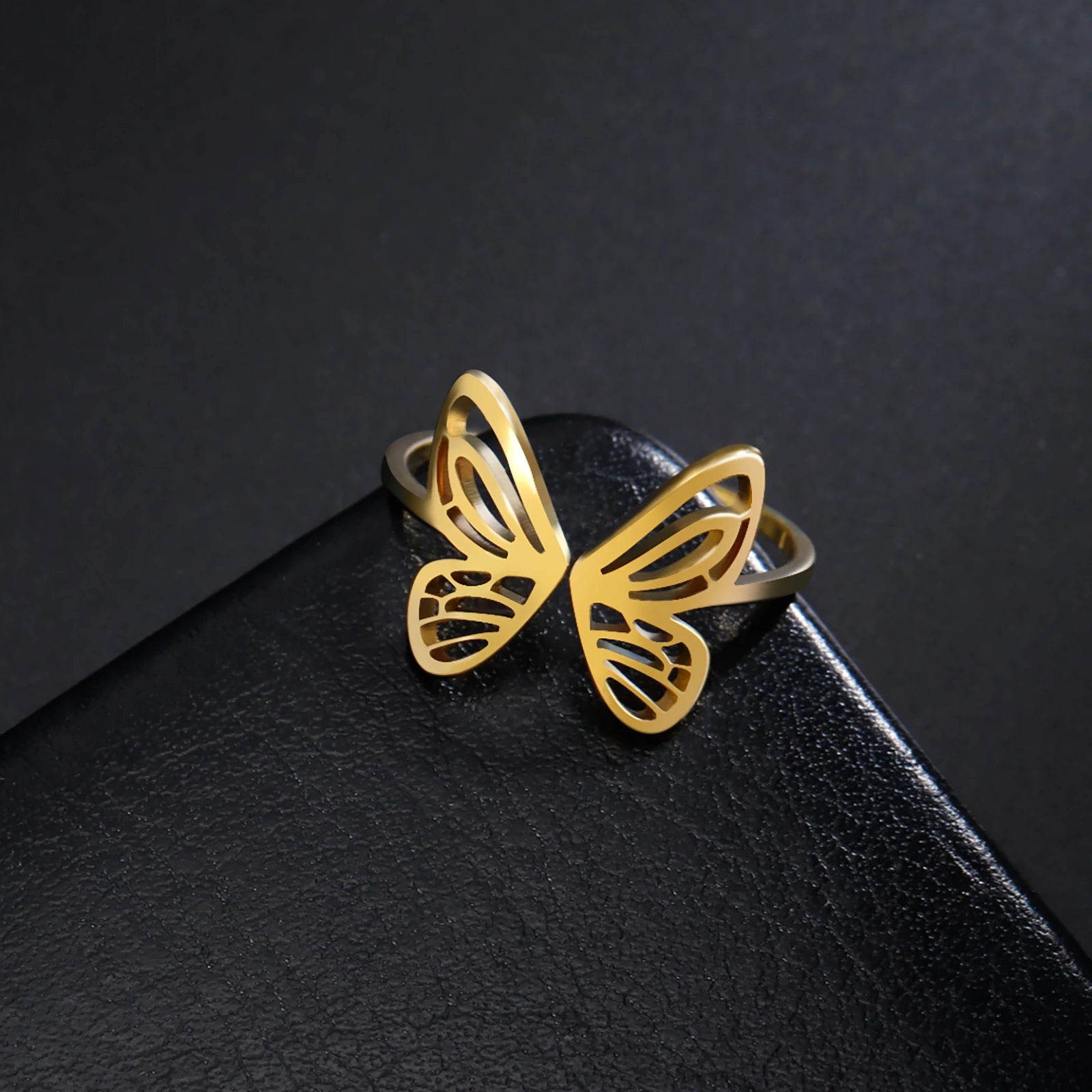 Add a graceful touch to your look with this Open Butterfly Ring in gleaming gold-colored stainless steel. Its elegant butterfly motif symbolizes beauty and transformation, making it a perfect accessory for weddings or everyday fashion. Designed for comfort and style, this ring is a thoughtful gift that enhances any outfit with a subtle yet striking charm.