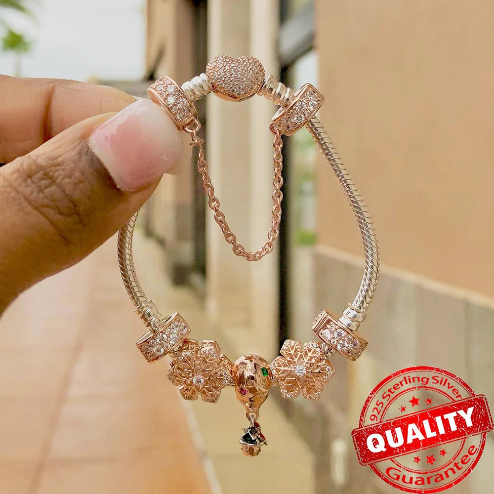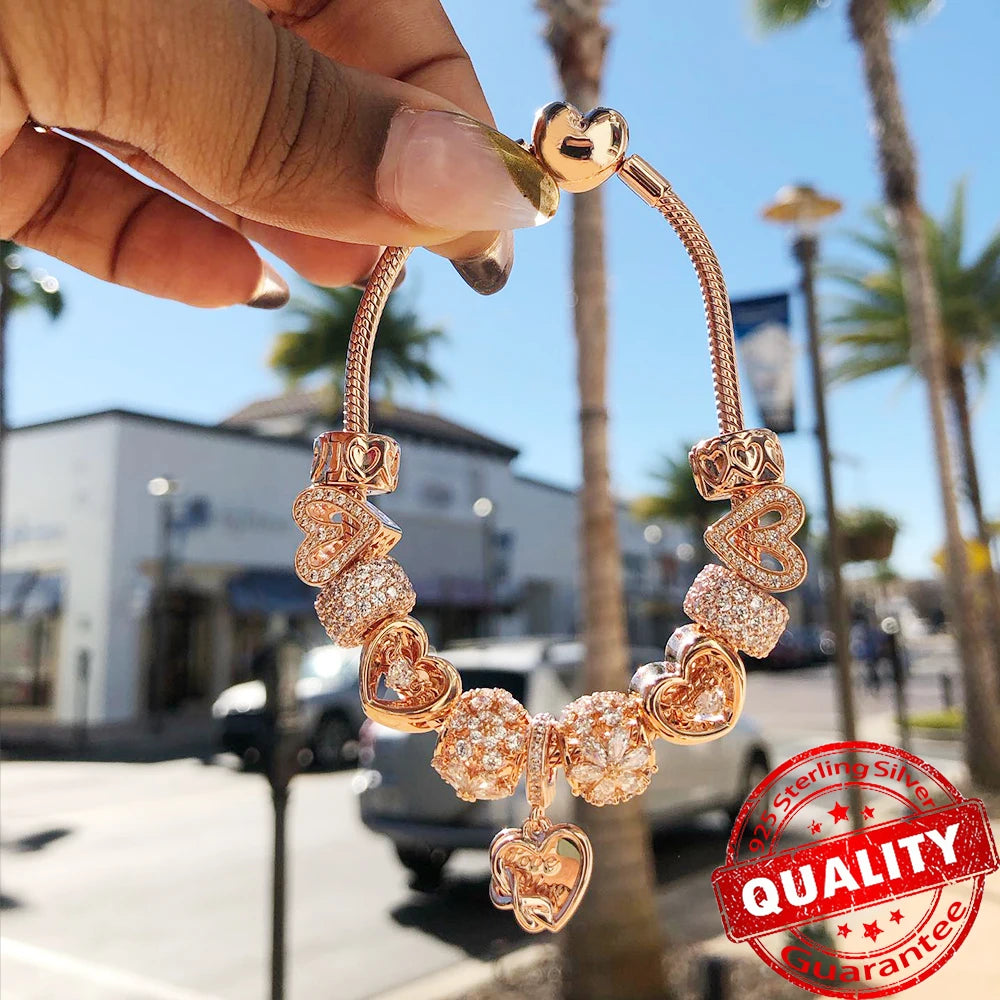 Indulge in luxury with this irresistible dangle charm that combines sparkling pavé triple-row beads with exquisite rose gold hearts and a delicate cherry blossom medallion. Crafted from premium 925 sterling silver, this charm isn't just an accessory—it's a conversation starter. Designed to fit perfectly with your Moment bracelet, it adds instant glamour and personal significance to your look. Why settle for ordinary when you can showcase your exceptional style with this stunning piece?