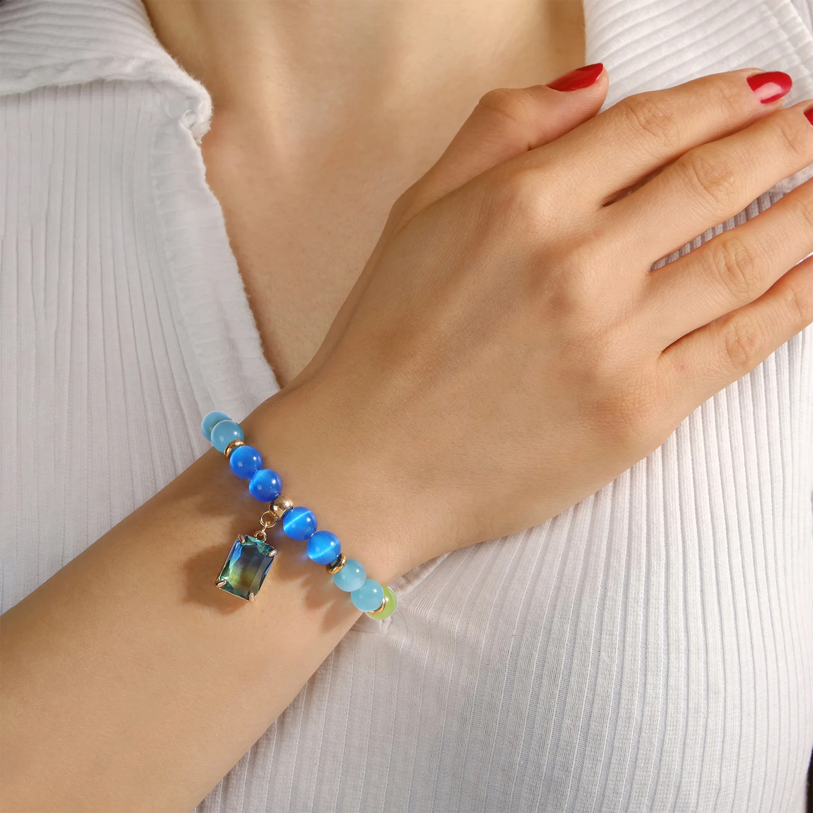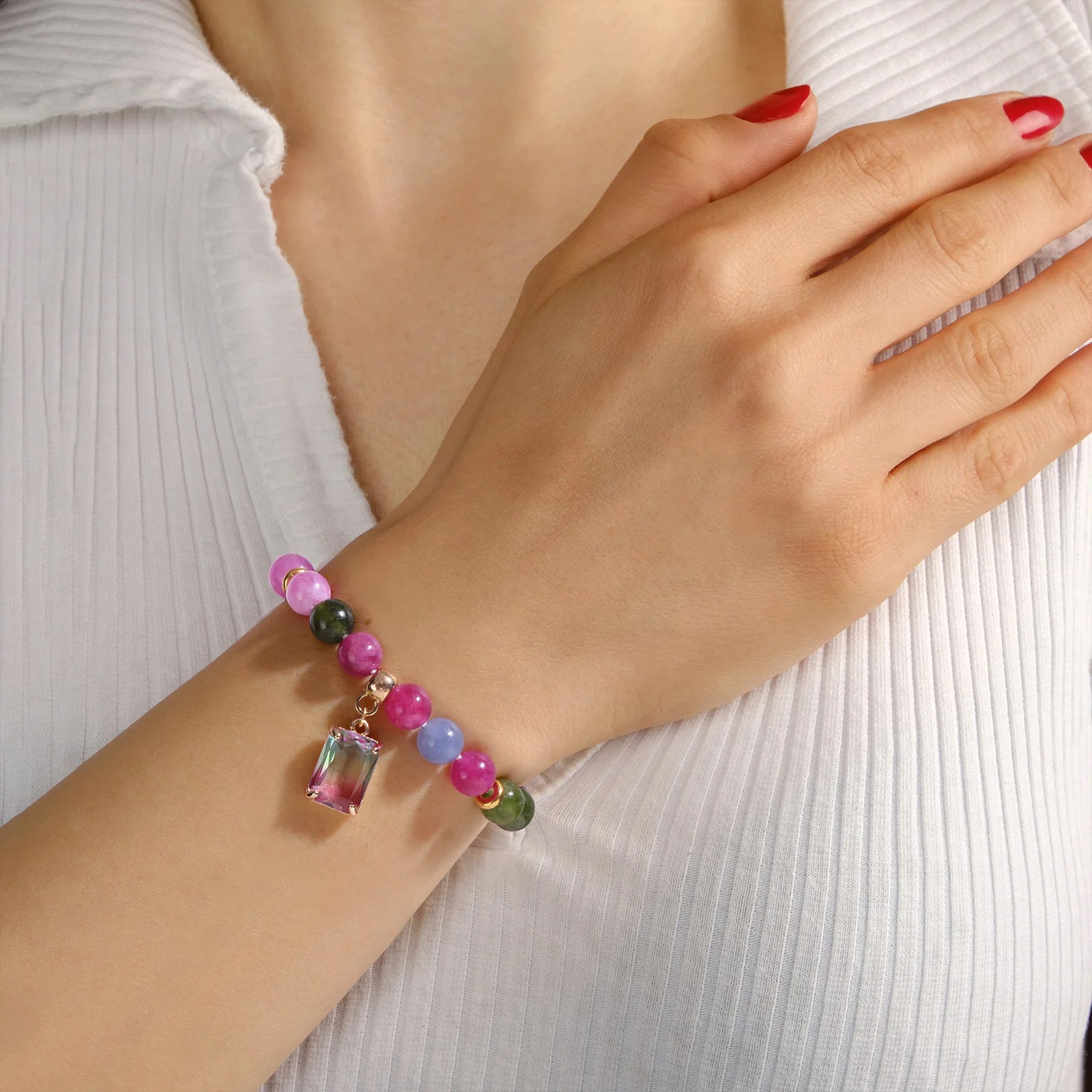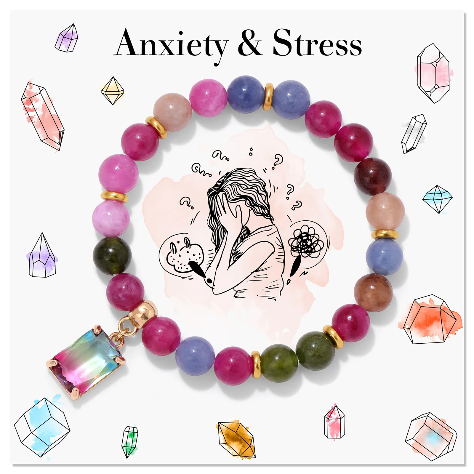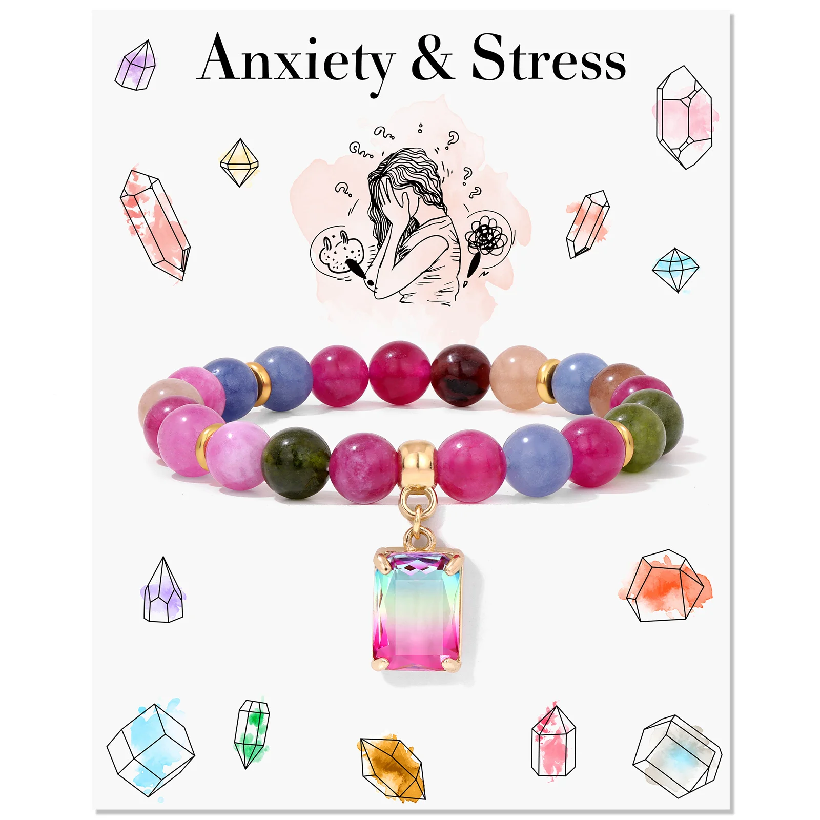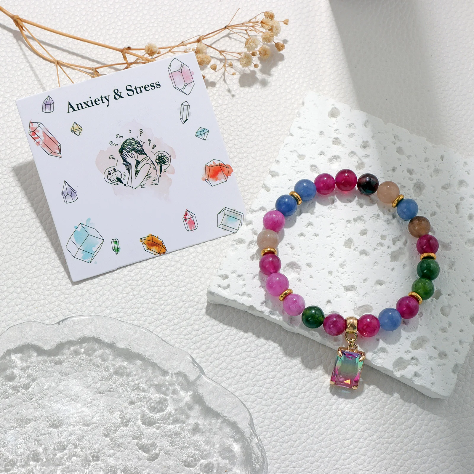 Embrace calm and balance with this striking square multicolor crystal charm bracelet. Crafted with 8mm tourmaline and chalcedony stone beads, each piece combines natural beauty with purposeful energy. The vibrant blend of colors makes a bold statement while the grounding properties of these semi-precious stones help ease anxiety and stress. Perfect for both men and women seeking meaningful jewelry that supports emotional wellness. Wear it as a daily reminder to find your center, or gift it to someone special who deserves a touch of natural healing and elegance.