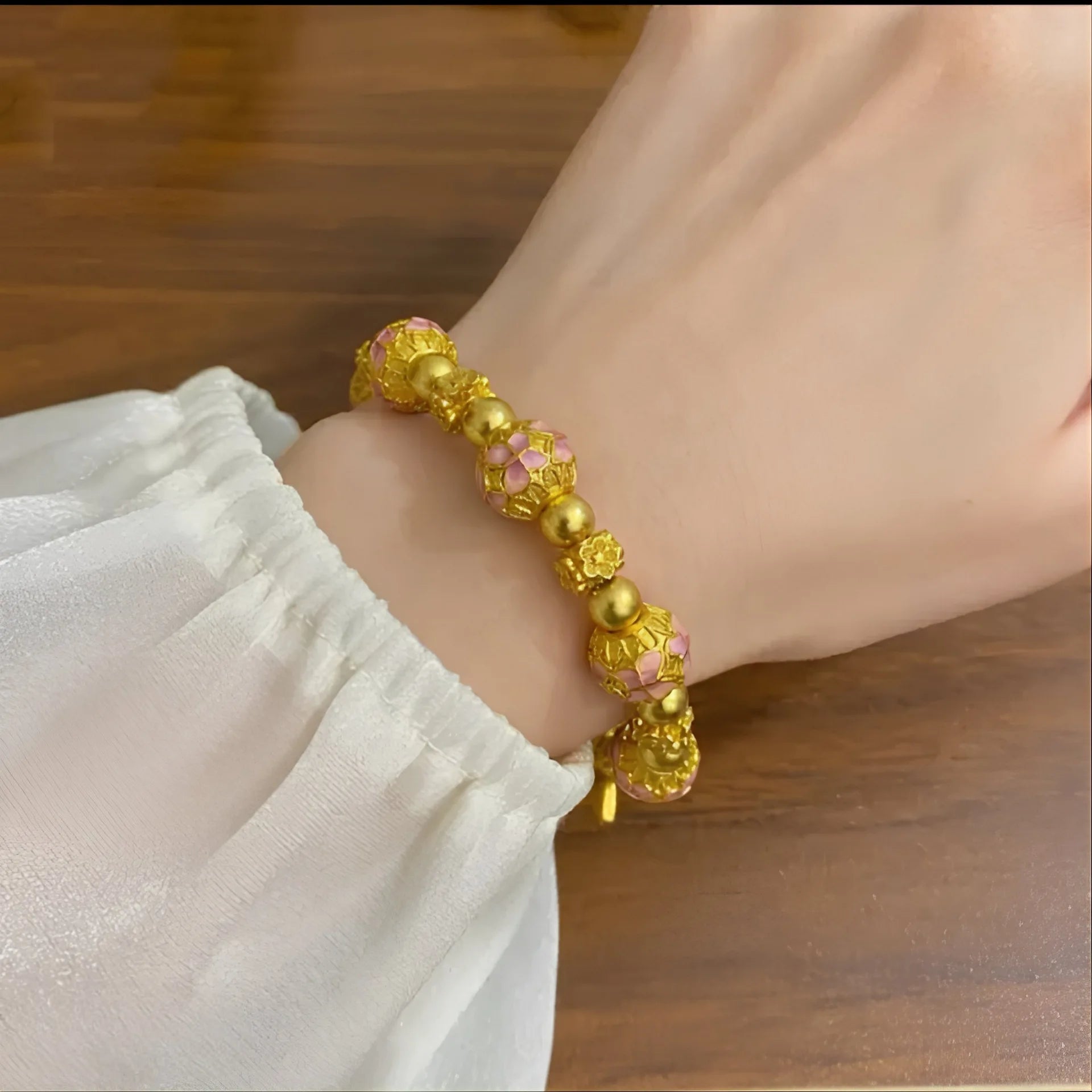 Experience the pinnacle of refined luxury with this exquisite 24K gold bracelet, forged from pure 9999 gold and adorned with an enchanting love flower design. Crafted for the discerning woman who values authenticity and prestige, this piece transcends fleeting trends while remaining undeniably contemporary. More than jewelry, it's a testament to wellness, abundance, and cultivated elegance. Each wear radiates confidence and sophistication, marking you as someone of distinguished taste and elevated standing. Invest in a timeless treasure that celebrates your success and inner brilliance.